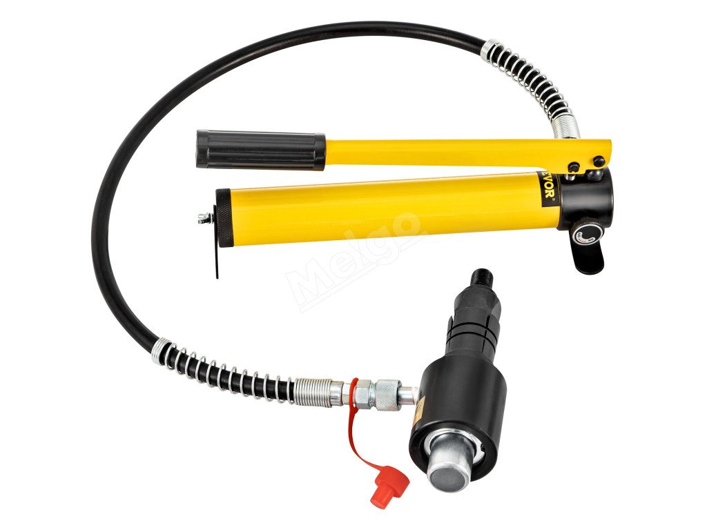 Náš manuálny hydraulický systém dokáže vyvinúť tlak 10 T. Olejová hadica dlhá 4 stopy zabezpečuje zvýšenú flexibilitu pri práci. Veľký olejový valec tesne prilieha a pružinová rukoväť zefektívňuje prácu.