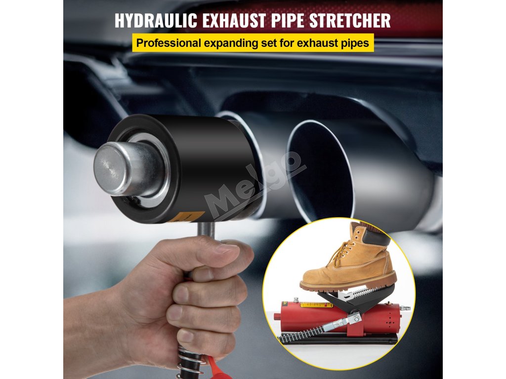 Súprava náradia na rozťahovanie výfukových rúr je dobre uložená v kompaktnom kufríku. Je prenosná a nie je ľahké ju stratiť.