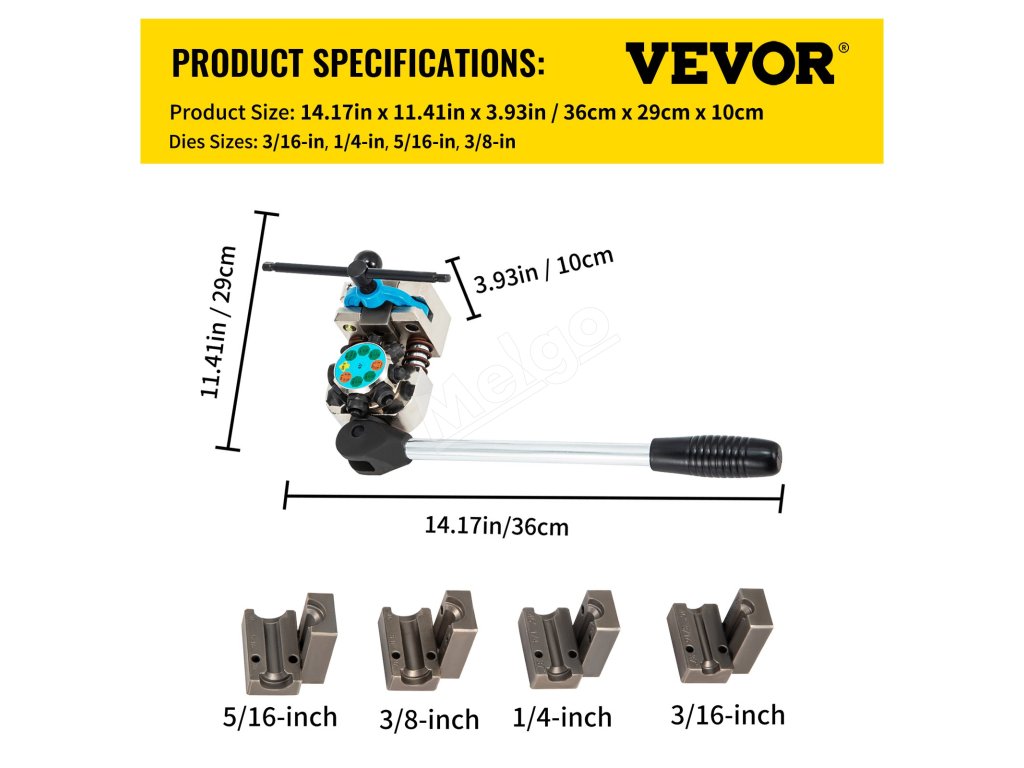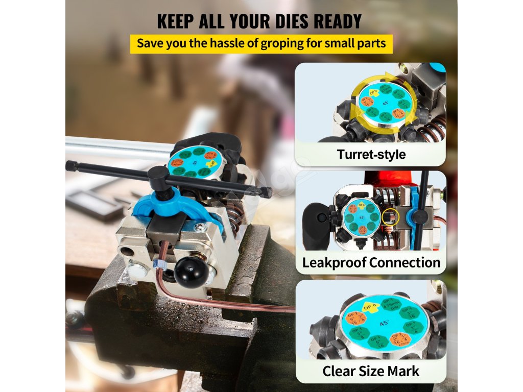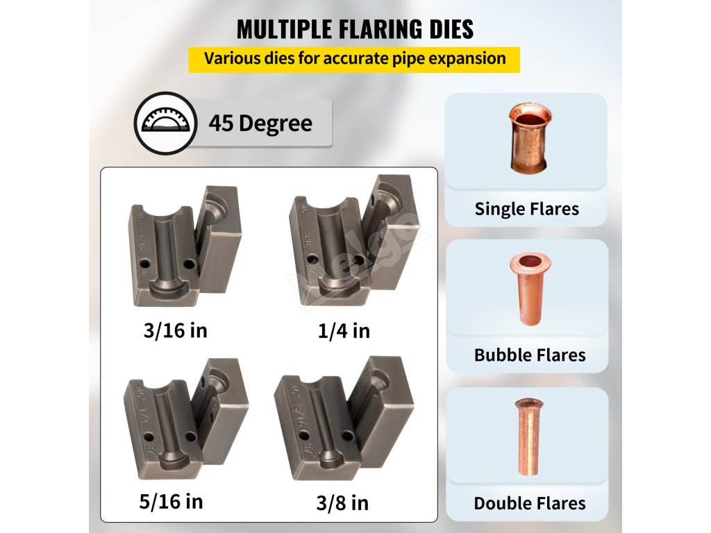 Nástroj na rozrezávanie brzdového potrubia umožňuje dosiahnuť 45 stupňov vysokej presnosti s dvojitým, jednoduchým a bublinkovým rozrezaním v rozsahu 4 veľkostí rúrok, 3/16 palca, 1/4 palca, 5/16 palca a 3/8 palca.