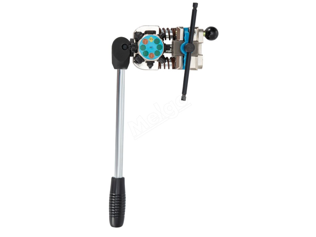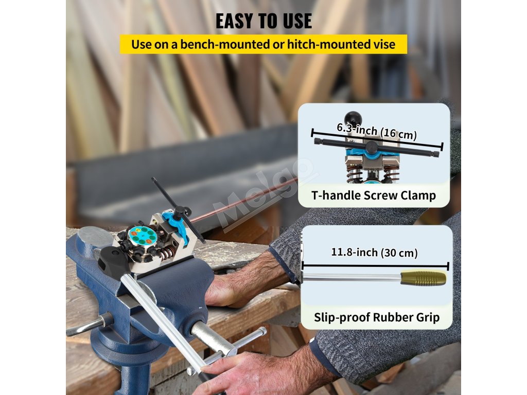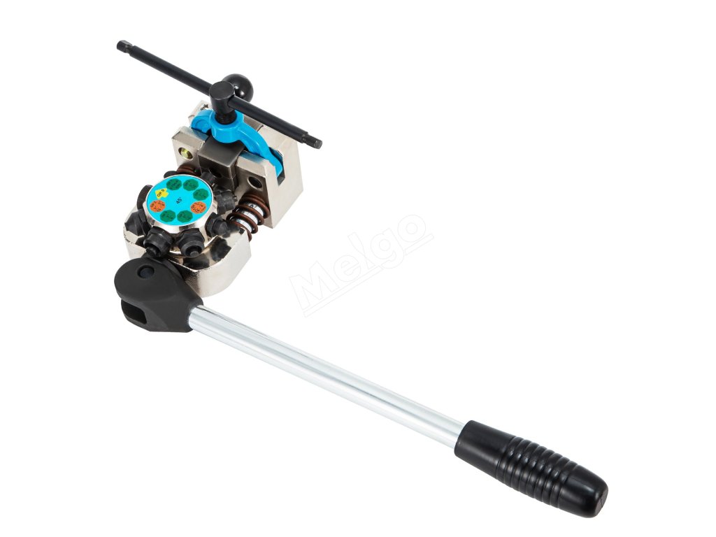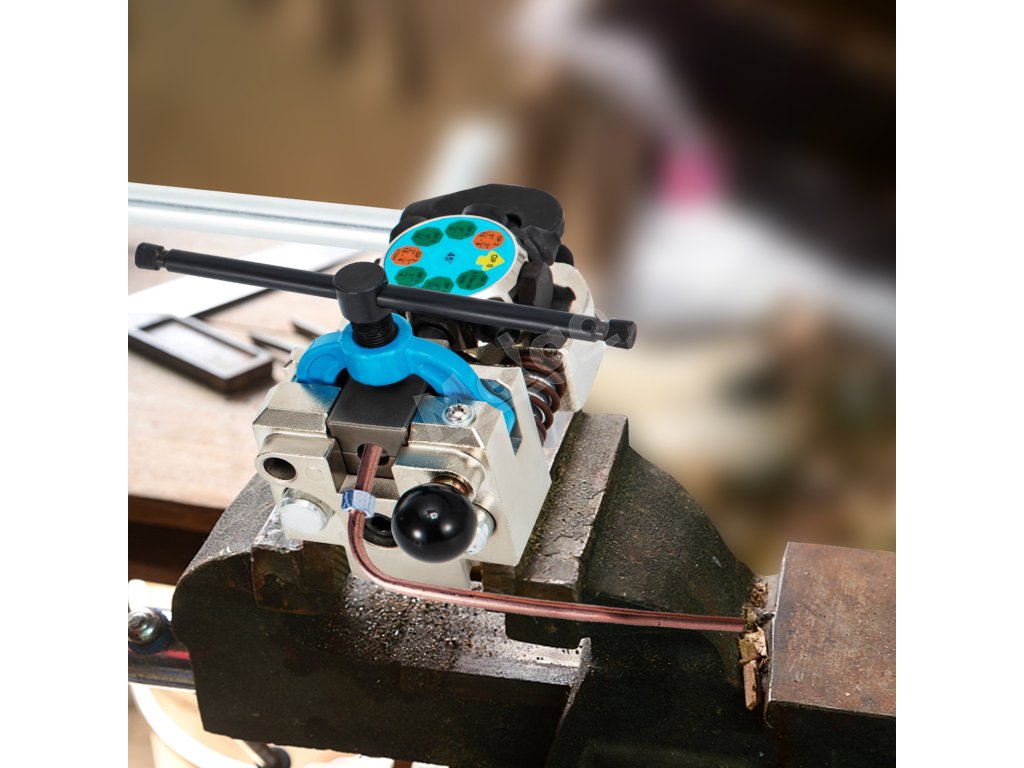 Náš profesionálny nástroj na rozrezávanie brzdového potrubia je navrhnutý tak, aby sa dal namontovať na stolový alebo závesný zverák. Skrutkovacia svorka s T-rukoväťou udržiava matricu a rúrku pevne na mieste.