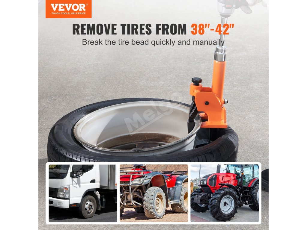 Ručný lámač pätiek pneumatík je vyrobený z odolnej tepelne spracovanej ocele č. 45 a je určený na manipuláciu s pneumatikami do veľkosti 42 palcov. Je vhodný pre širokú škálu vozidiel a zabezpečuje bezproblémovú demontáž pneumatík pre rodinné vozidlá, SUV, nákladné vozidlá, traktory a ďalšie.