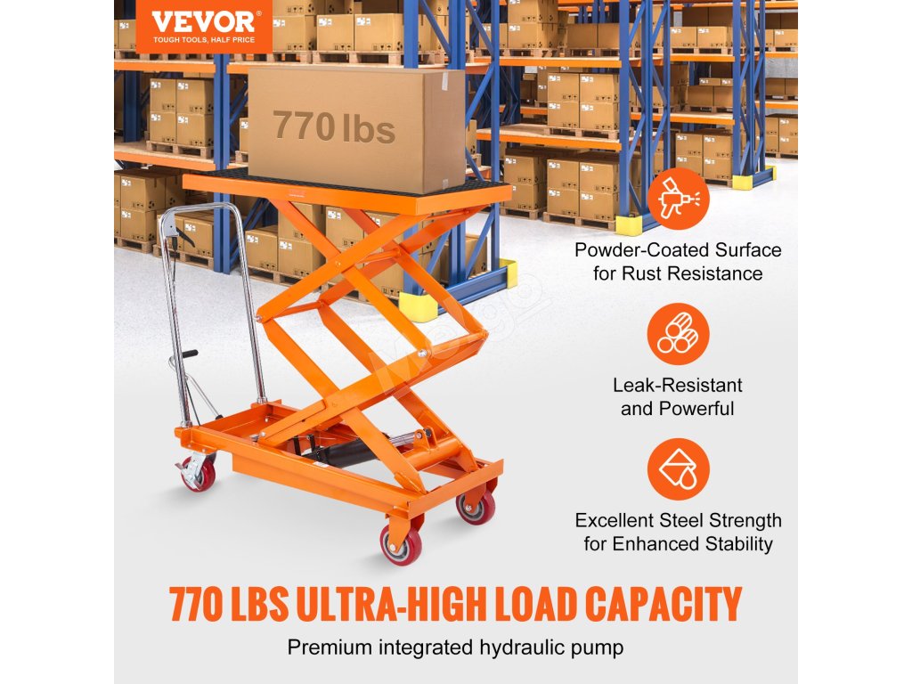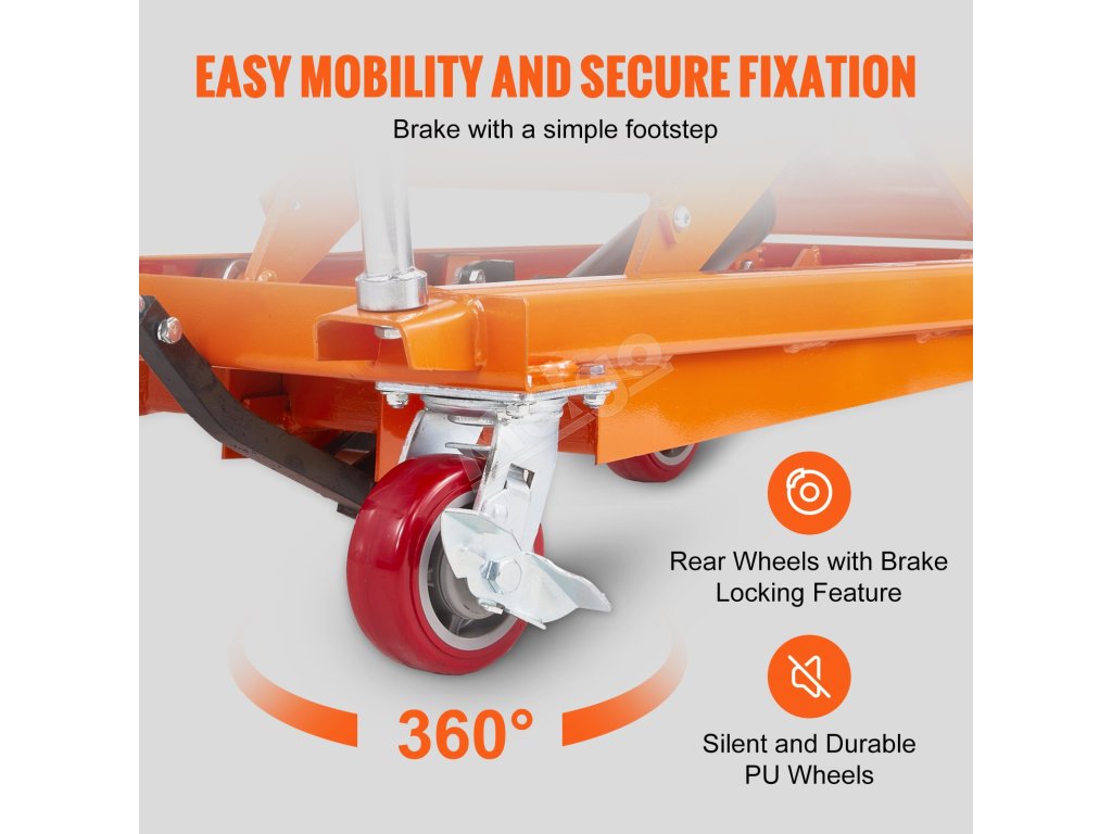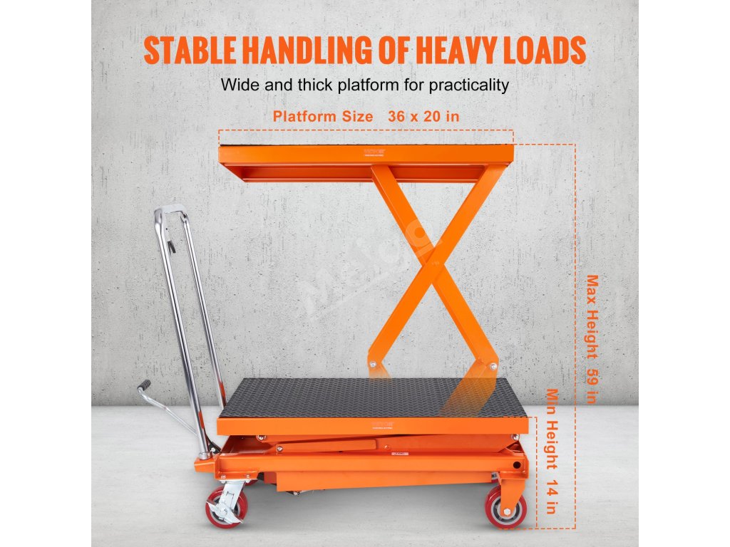 Hydraulický zdvíhací vozík 770lbs, zdvih 59", nožnicový, 4 kolieska