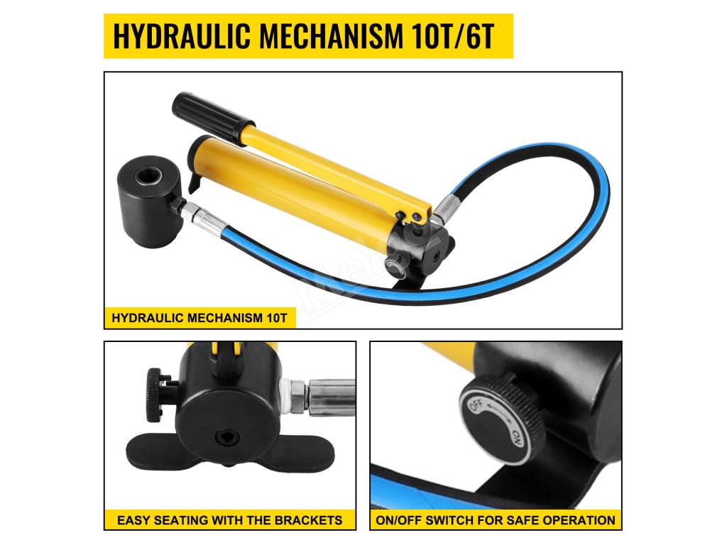 Maximálny tlak: 10T. Vyraďovacia súprava je vybavená hydraulickým čerpadlom a 3,1" olejovou hadicou, možnou pre úzky priestor. Vďaka hydraulickému mechanizmu je prerazenie otvorov hračkou.