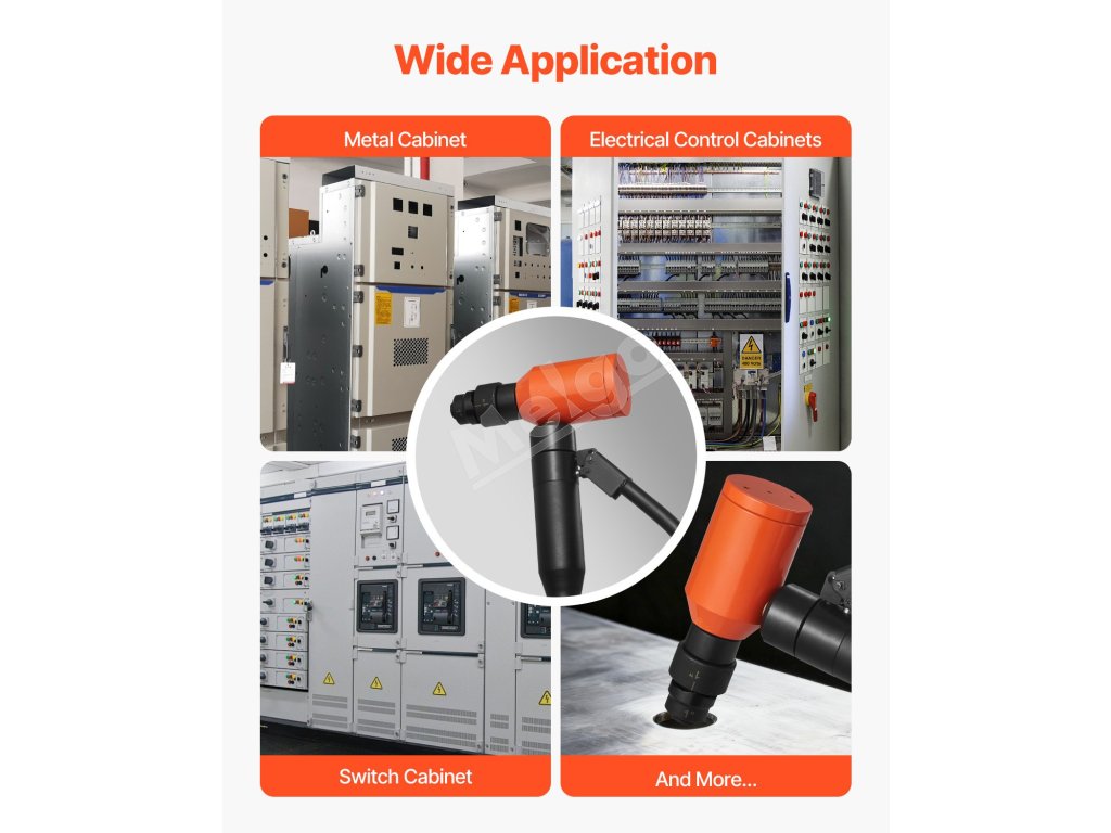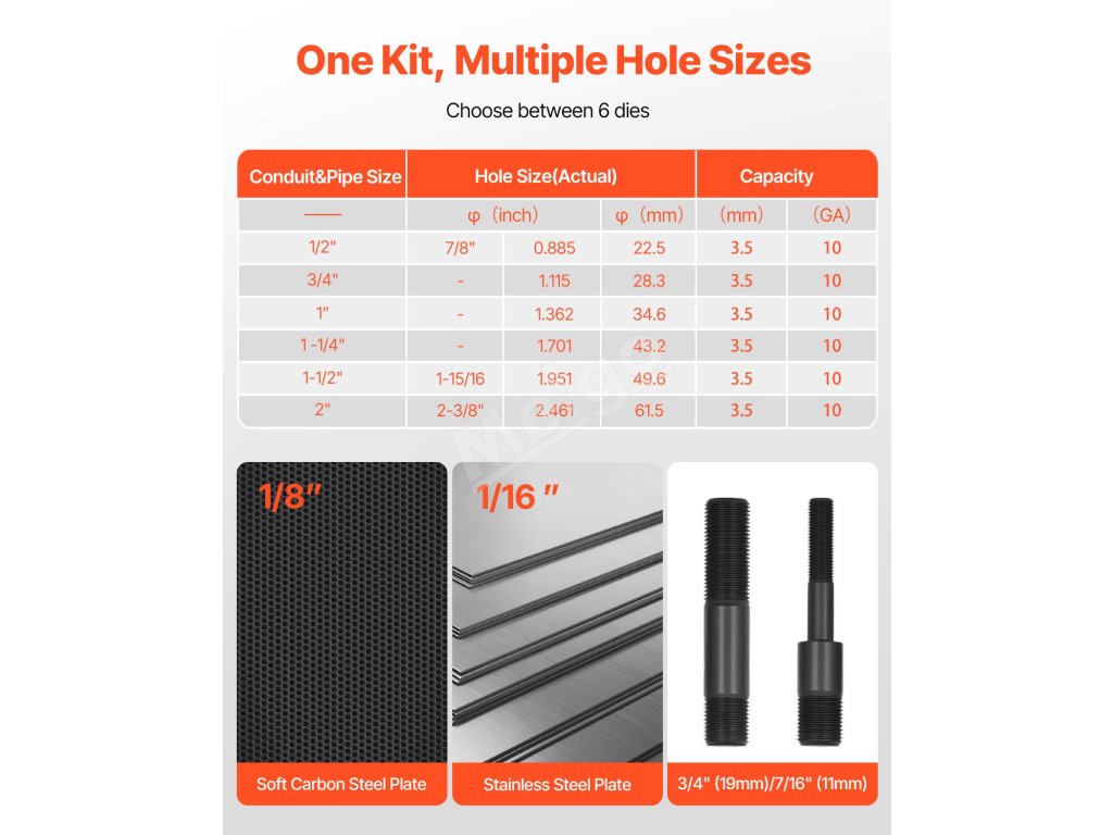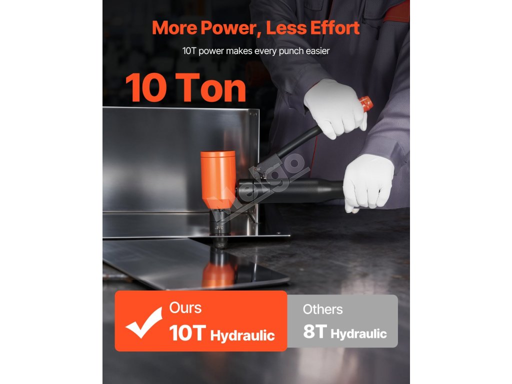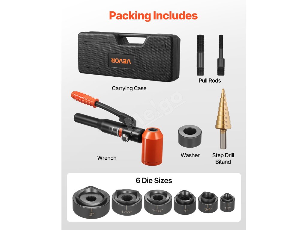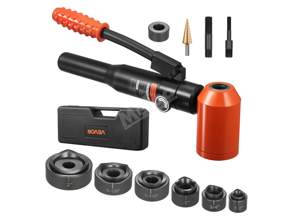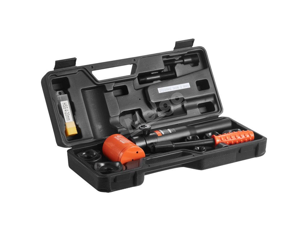 So 6 razidlami ((1/2" až 2"/12,7 až 50,8 mm) pokrýva táto súprava vyraďovacích dierovačov s hmotnosťou 10 ton/98,07 kN celý rad veľkostí otvorov. Laserové značky stupnice umožňujú rýchle a presné polohovanie; dvojité stupnice v palcoch a milimetroch umožňujú jednoduché čítanie. Nízkoprofilové razníky a hydraulické zariadenie sa účinne dostanú do stiesnených alebo vyvýšených priestorov.