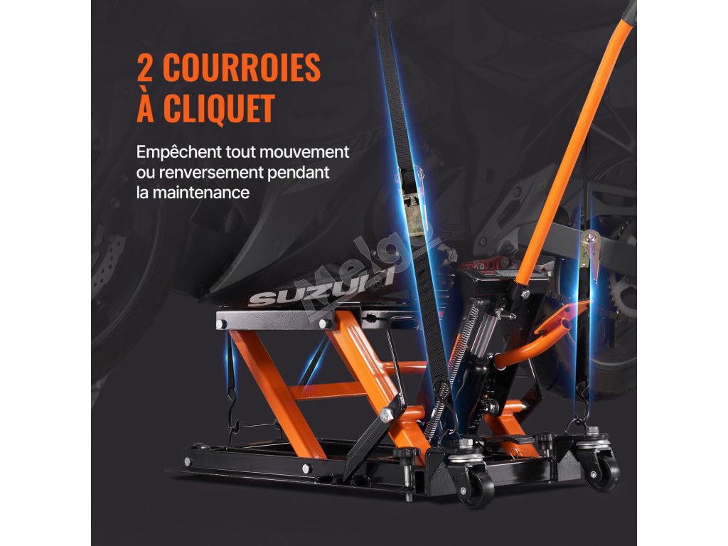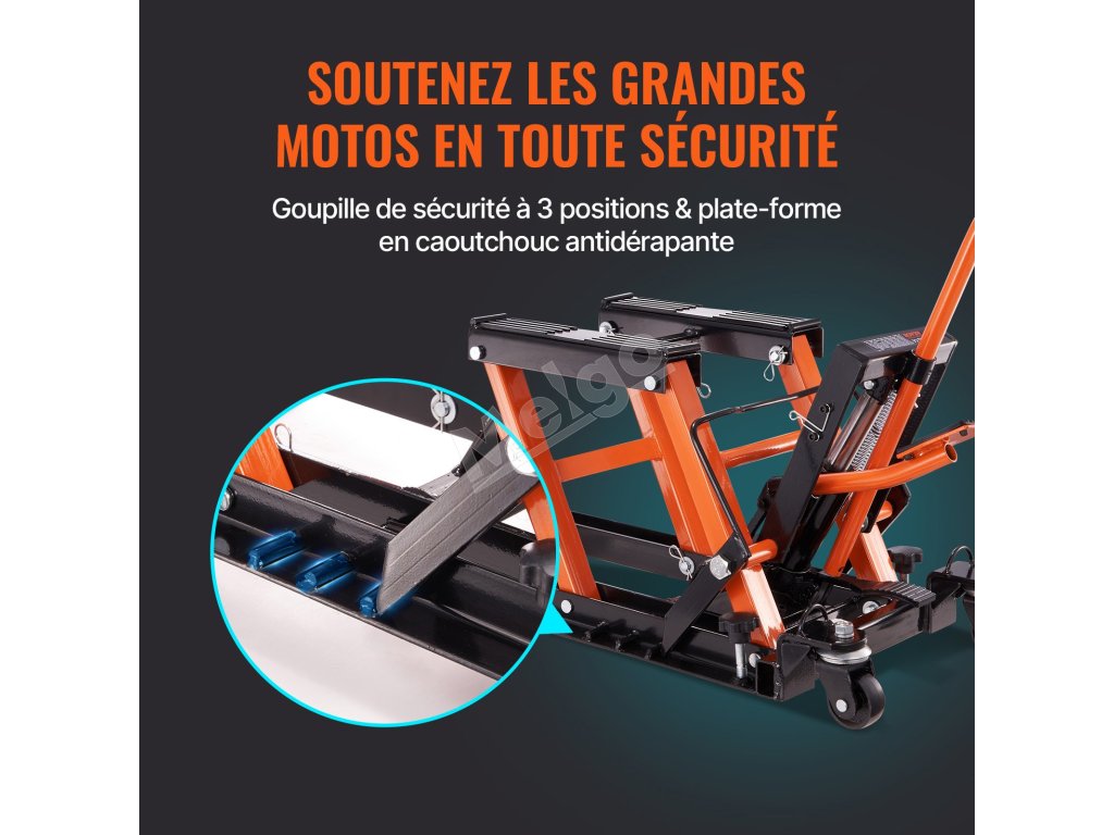 Na zaistenie bezpečnosti a stability vášho motocykla je nožnicový zdvihák VEVOR ATV vybavený pokročilým mechanizmom. Má bezpečnostný kolík s tromi rôznymi polohami. Tento kolík umožňuje zablokovať zdvihák vo zvolenej výške. Súčasťou tohto balenia zdviháka na motocykel sú aj dva račňové pásy. Pri zdvíhaní motocykla tieto pásy poskytujú dodatočnú stabilitu, aby sa motocykel pevne zaistil na mieste a zabránilo sa jeho prevráteniu a pohybu.