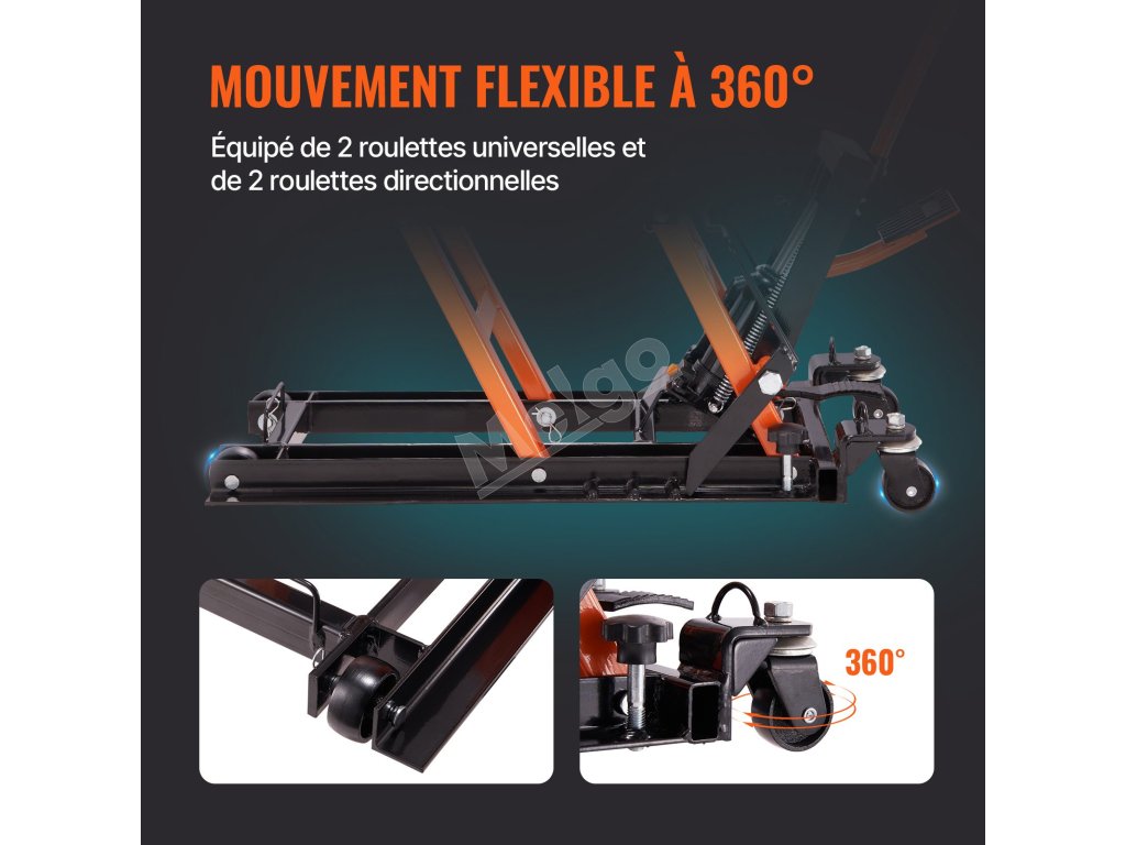 Zdvíhací zdvihák na motocykel s prémiovým pohyblivým systémom vám pomôže premiestniť ho kamkoľvek. Má štyri kolieska, z ktorých dve sú smerové a dve sú univerzálne 360° kolieska, ktoré vám pomôžu pri jeho premiestňovaní. Zdvíhací zdvihák s 360-stupňovými kolieskami vám uľahčí jeho premiestňovanie v akomkoľvek smere.
