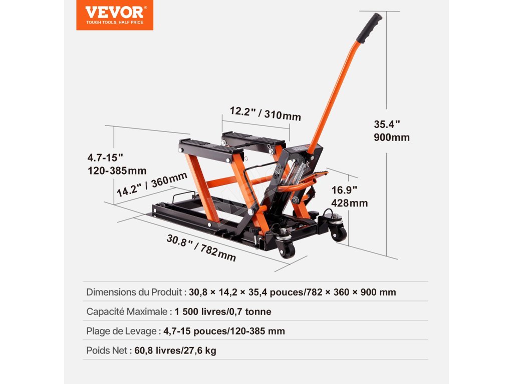 Ak má zdvihák na údržbu motocyklov vysokú nosnosť, bezpečne podoprie motocykle akejkoľvek veľkosti a hmotnosti. Zaručuje tiež lepšiu stabilitu pri zdvíhaní ťažkých motocyklov. Vzhľadom na tento faktor nožnicový zdvihák VEVOR ATV bezpečne unesie až 1500 libier (0,7 tony).