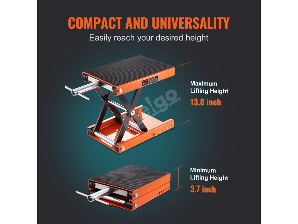 Motocyklový zdvihák VEVOR je univerzálny nástroj, ktorý sa hodí na rôzne modely motocyklov. Nezáleží na tom, či vlastníte pouličný motocykel, cruiser alebo cestovný motocykel. Tento zdvihák vyhovie vašim potrebám. Nastaviteľná výška a široká plošina sa prispôsobia rôznym veľkostiam motocyklov. Vďaka týmto vlastnostiam je neuveriteľne užitočný pre každého nadšenca motoriek. Konštrukcia zdviháka zabezpečuje kompatibilitu s viacerými majiteľmi motocyklov. Preto je ideálnou voľbou pre majiteľov motocyklov vďaka svojej prispôsobivosti a jednoduchému používaniu. Vďaka tomu sa výťah ľahko používa v každej garáži.