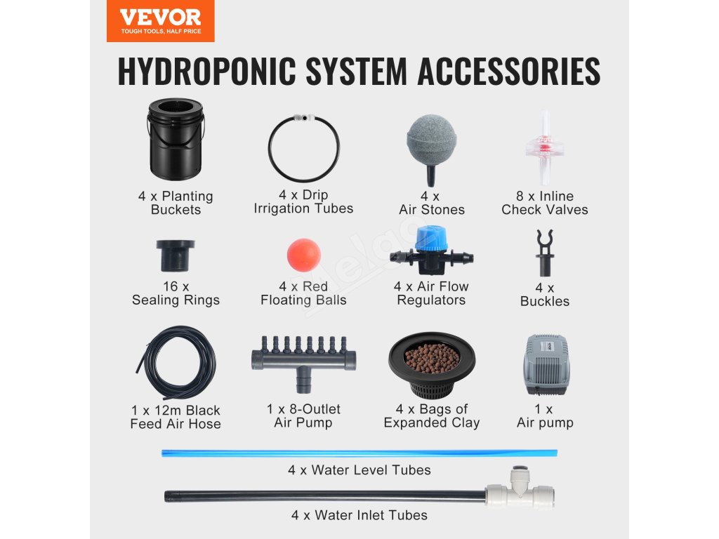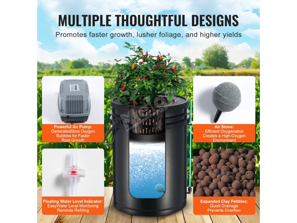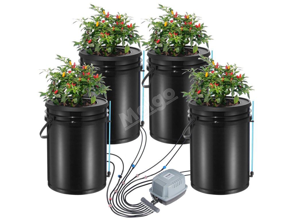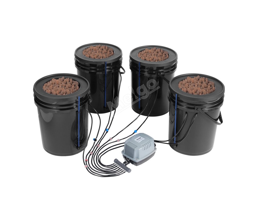 Hydroponický systém dwc 4×5-gallon s čerpadlom, kameňmi a hladinomerom