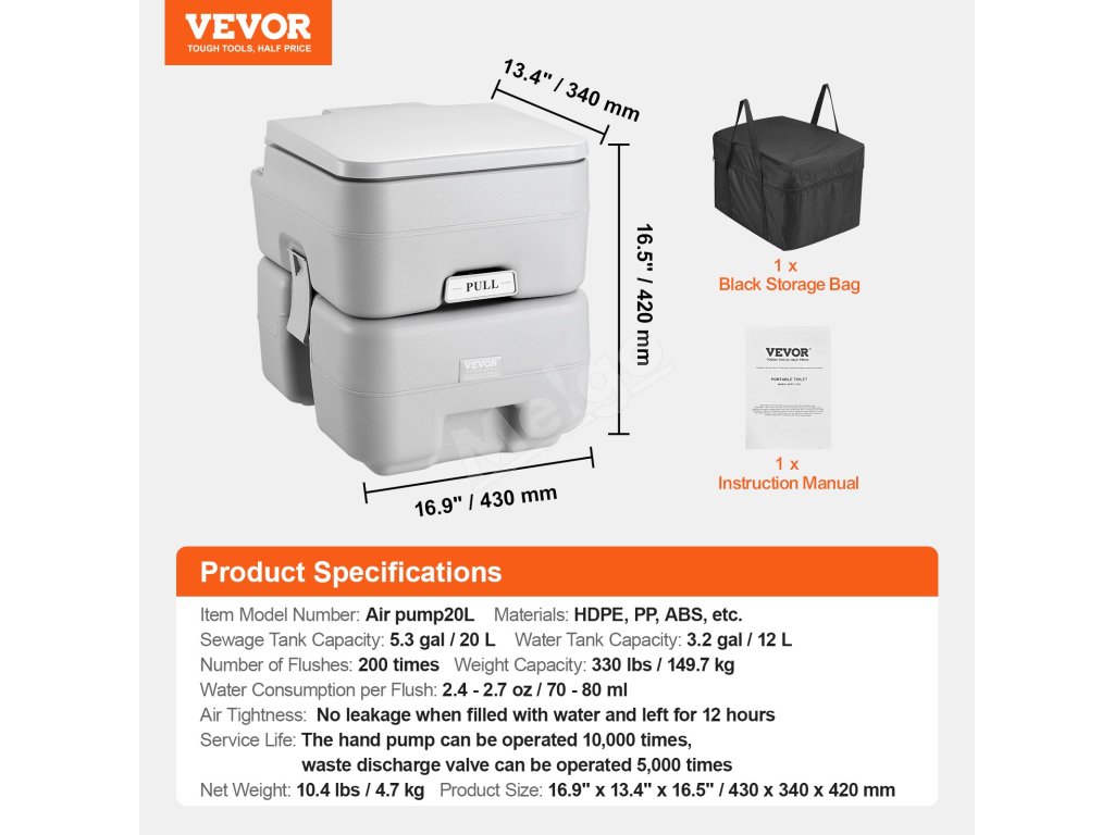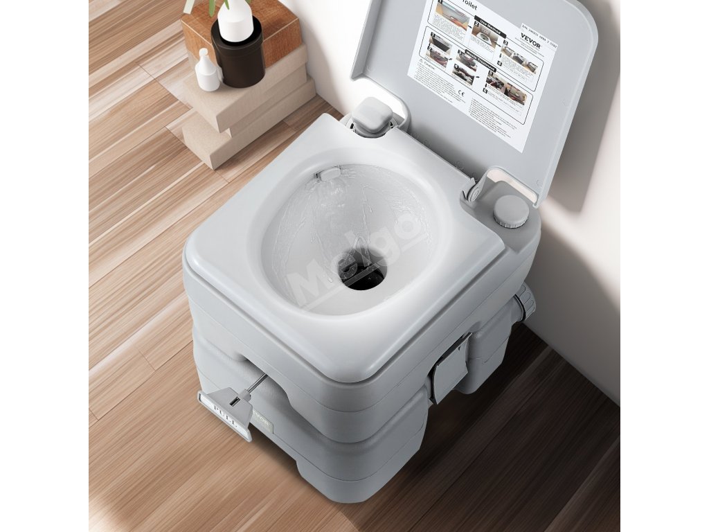 Prenosná toaleta má veľkú kapacitu odpadovej nádrže 5,3 gal / 20 l s funkciou splachovania, ideálna na cestovanie na dlhé vzdialenosti, vhodná na použitie v karavanoch, lodiach, nákladných vozidlách, pri kempovaní v prírode, na cestách atď.
