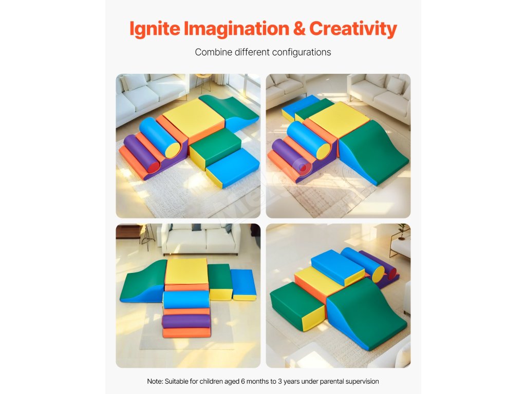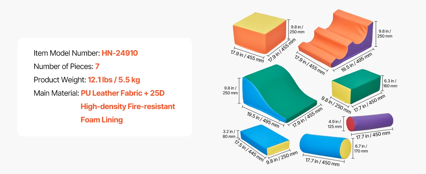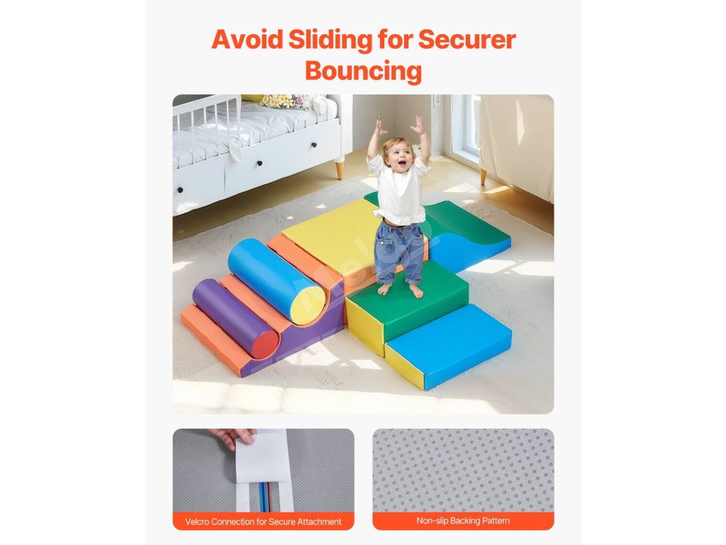 Vyrobené z peny s vysokou hustotou, ktorá poskytuje vynikajúcu oporu, sú lezecké bloky ideálne pre deti na lezenie, plazenie, šmýkanie a dlhšie hranie, pričom sa vyhýbajú kolíziám a zraneniam.
