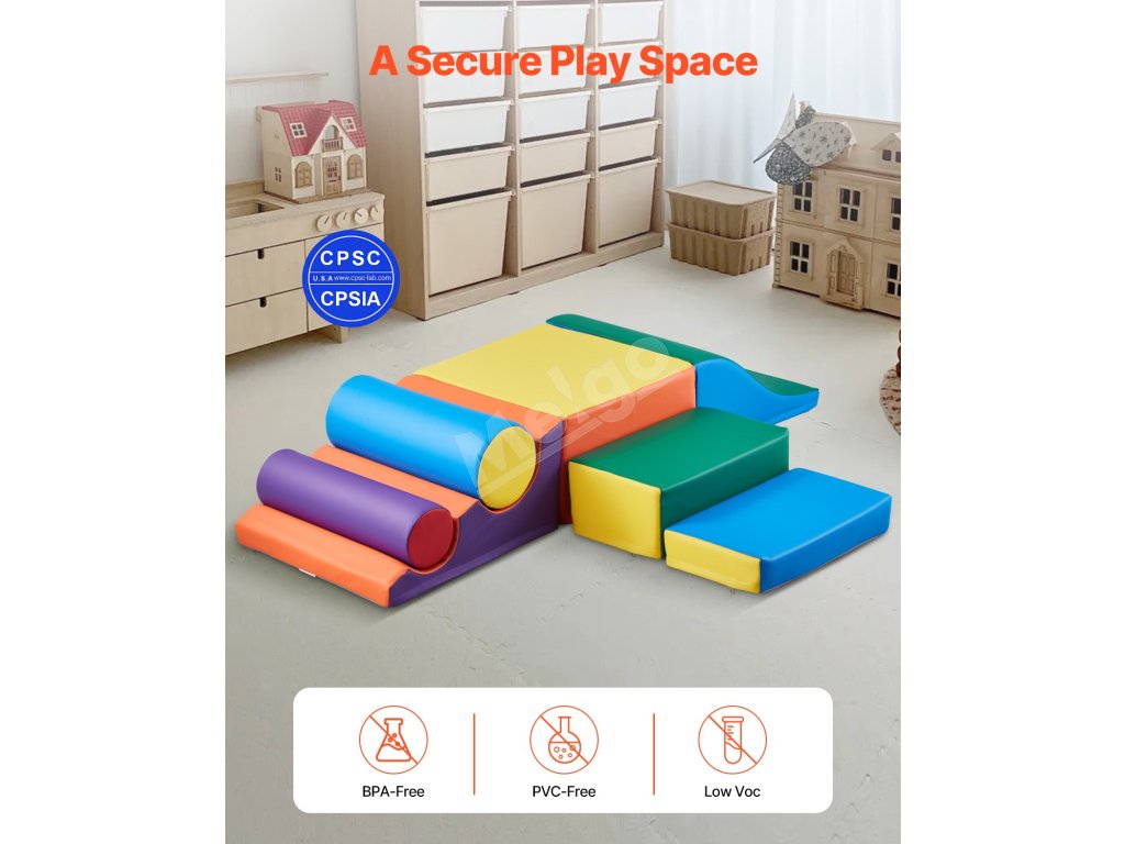 Súprava mäkkých lezeckých blokov využíva vysokokvalitné materiály a spĺňa normy CPSIA s viacerými bezpečnostnými prvkami navrhnutými s ohľadom na zdravie dieťaťa.