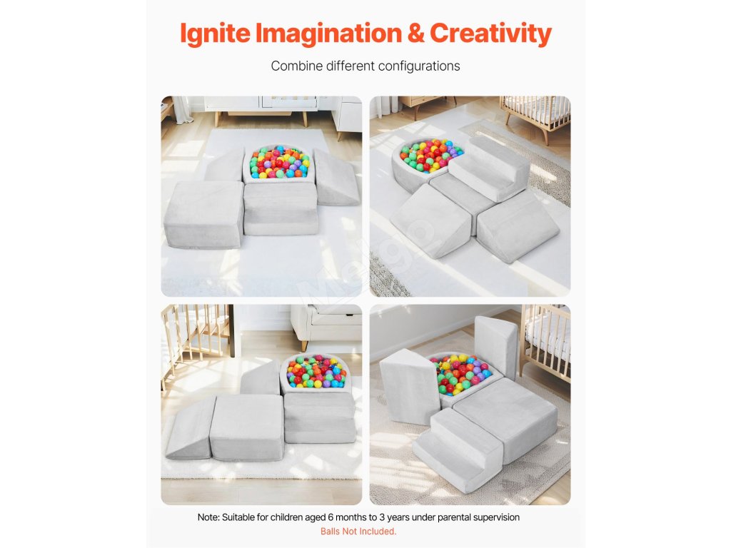 Vďaka rôznym tvarom modulov možno naše penové lezecké bloky ľubovoľne kombinovať. Deti môžu stavať rôzne štruktúry a rozvíjať tak svoje zmyslové a motorické zručnosti.