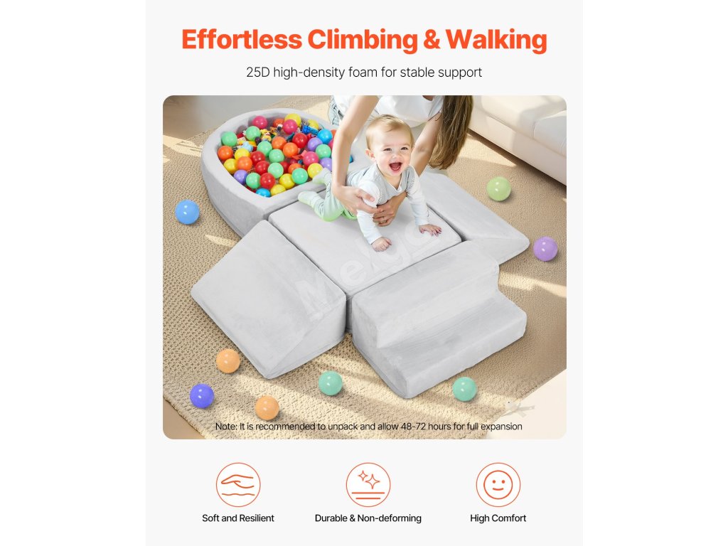 Vyrobené z peny s vysokou hustotou, ktorá poskytuje vynikajúcu oporu, sú lezecké bloky ideálne pre deti na lezenie, plazenie, šmýkanie a dlhšie hranie, pričom sa vyhýbajú kolíziám a zraneniam.