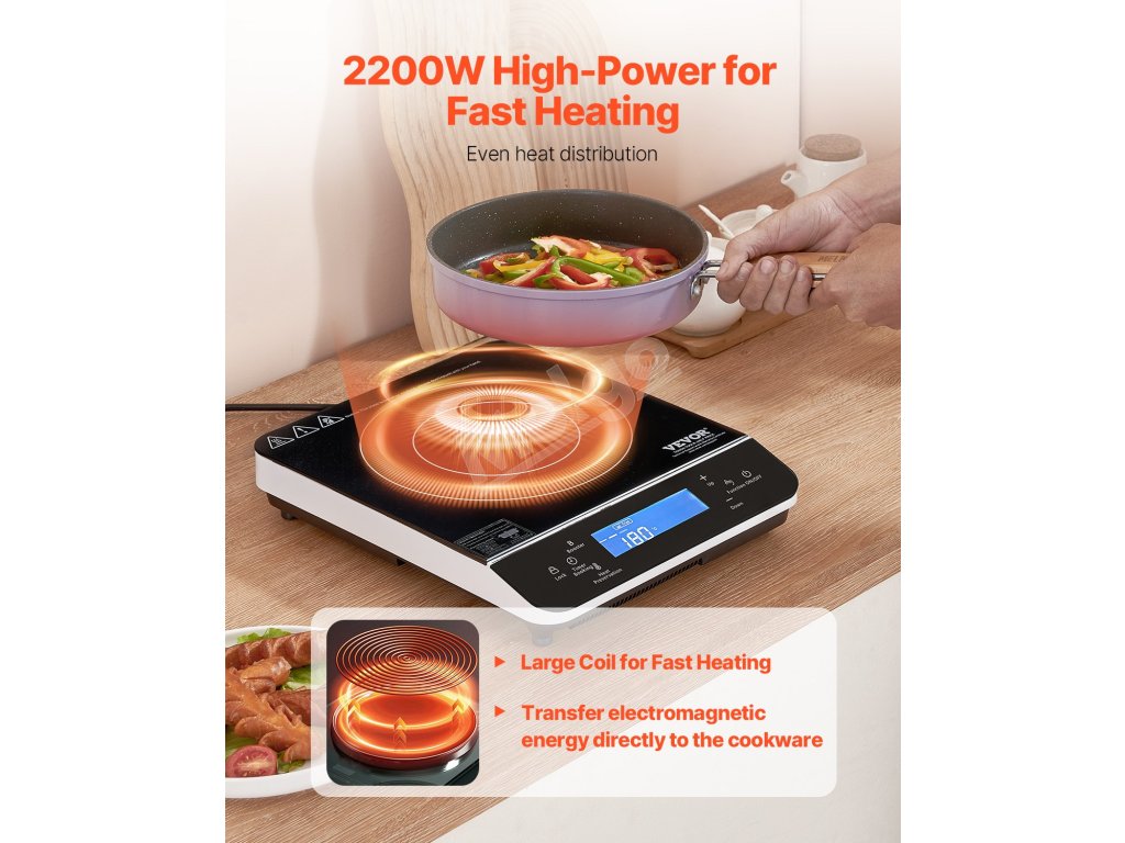 Prenosný indukčný varič 2200W, 9 úrovní, časovač 4h, detská poistka