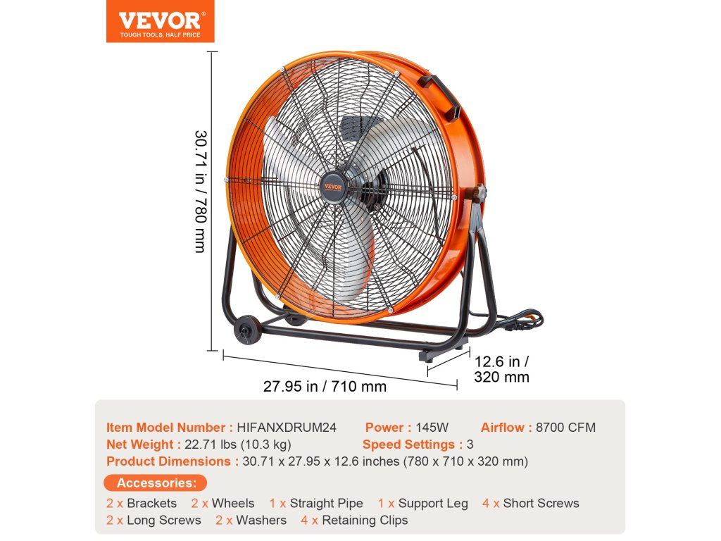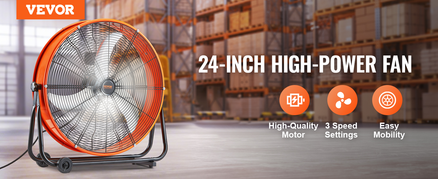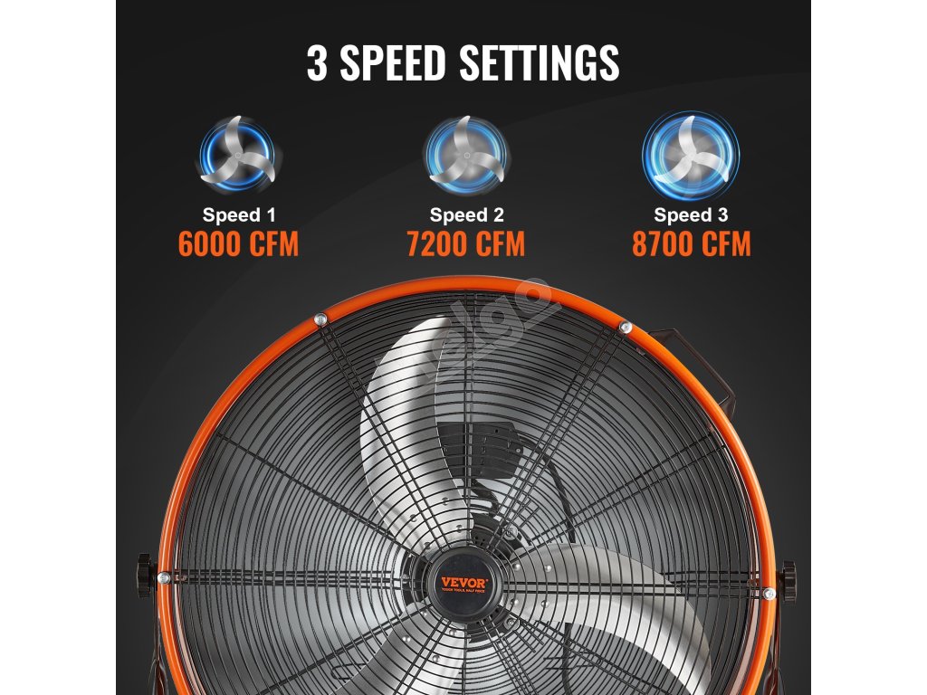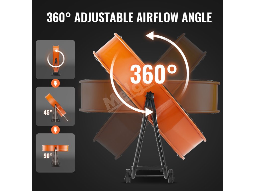 Bubnový priemyselný ventilátor 24" 8600cfm 3 rýchlosti 360° náklon