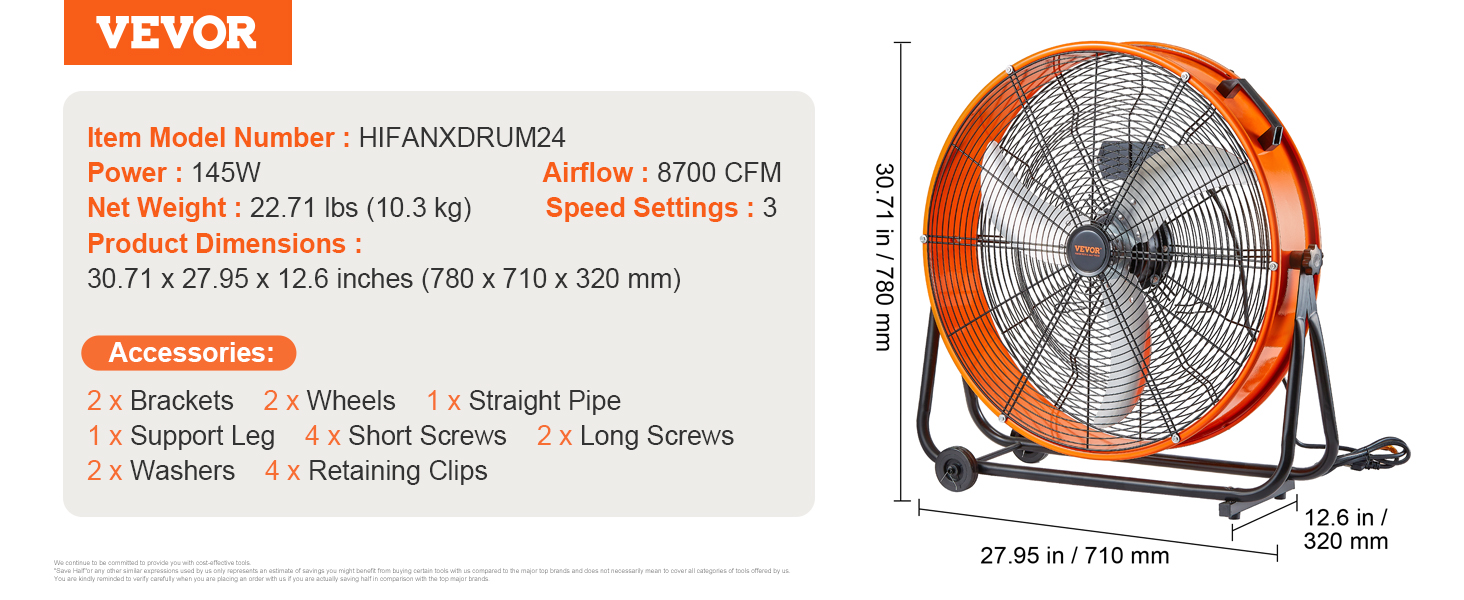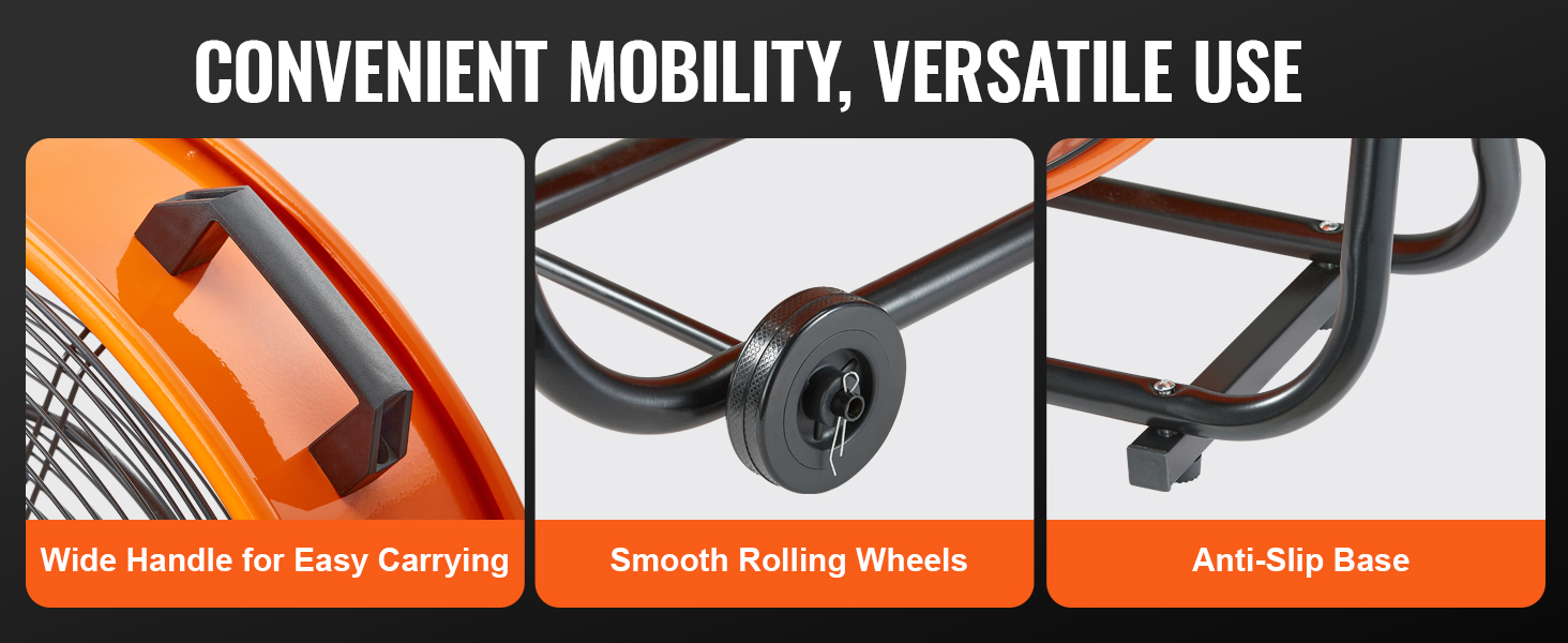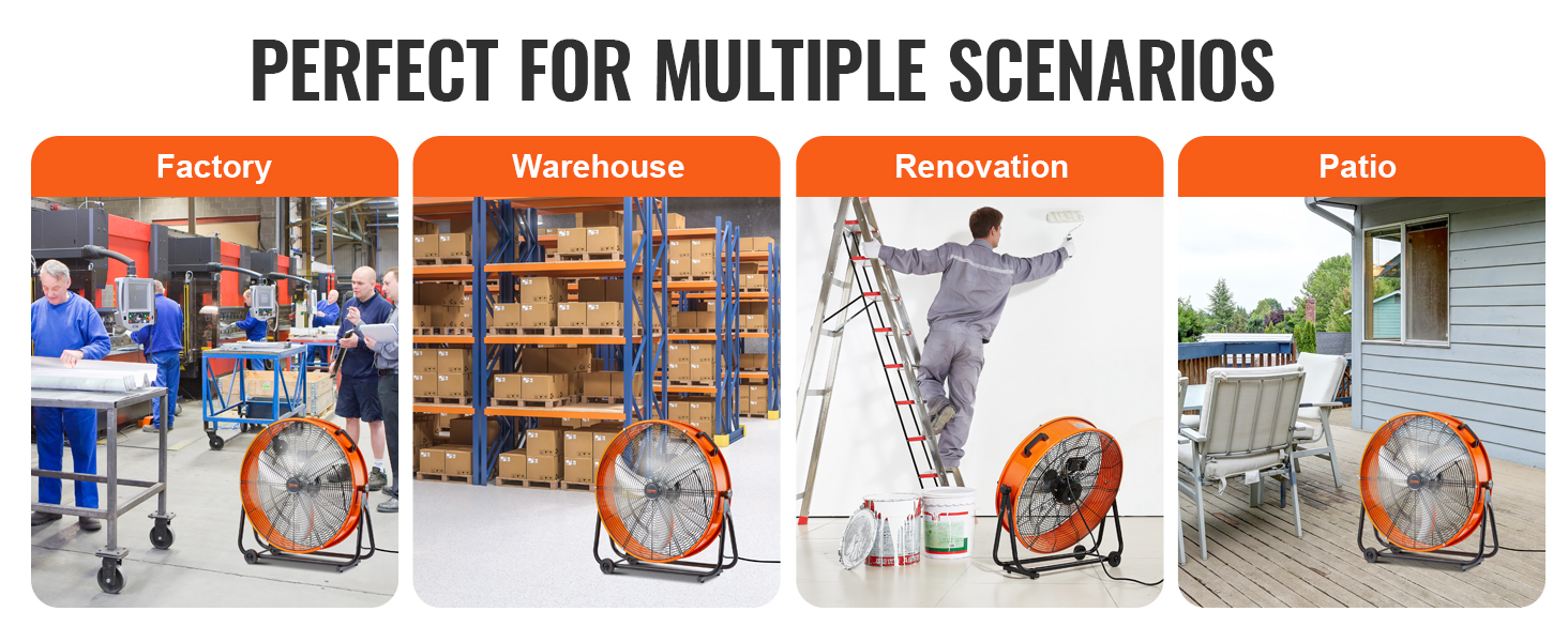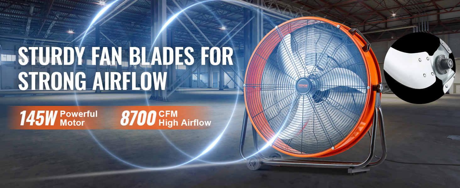 Priemyselný ventilátor VEVOR je vybavený vysokokvalitným motorom, ktorý zabezpečuje silný prúd vzduchu na efektívne vetranie. Jeho špecializovaná konštrukcia lopatiek zlepšuje pohyb vzduchu a zabezpečuje silné a stabilné prúdenie vzduchu pre svieže a pohodlné pracovné prostredie.