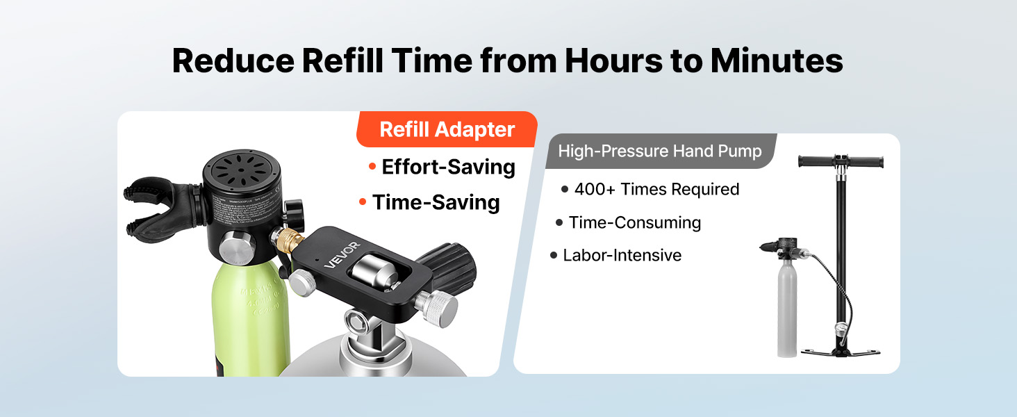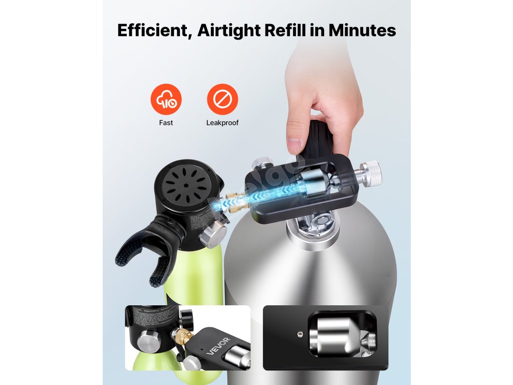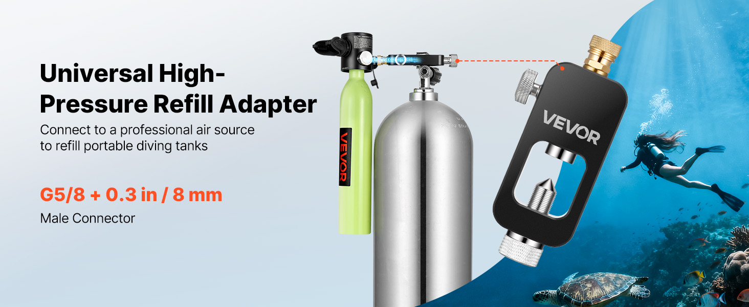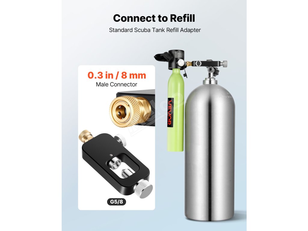 Rozlúčte sa s ručným čerpaním 1 l fľaše 800-krát. Pripojením k profesionálnym zdrojom vzduchu prostredníctvom tohto adaptéra na doplňovanie potápačských fliaš sa čas doplňovania skráti z hodín na minúty.