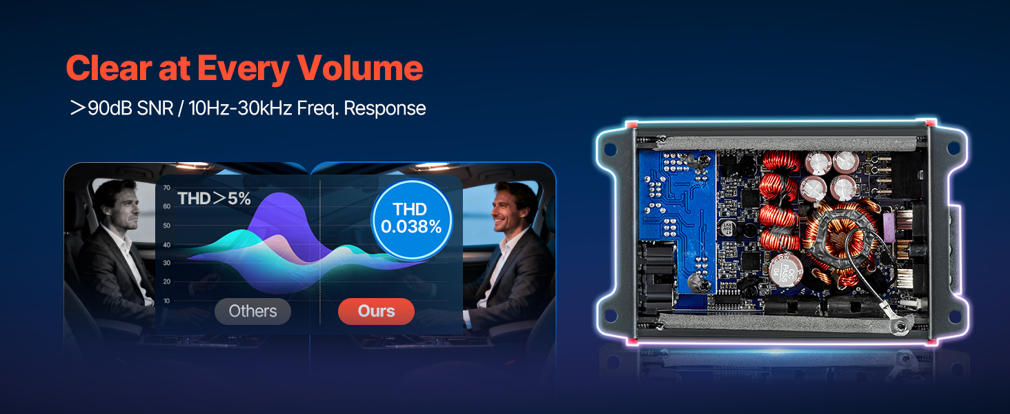 Tento 4-kanálový zosilňovač, vyrobený s využitím sofistikovanej technológie s nízkym skreslením, zachováva vašu hudbu vernú a transparentnú a poskytuje realistické detaily a plynulé prehrávanie – aj keď zvýšite hlasitosť.