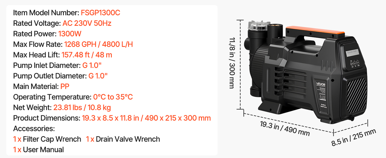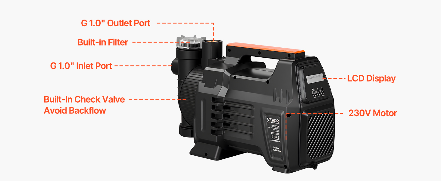 Toto čerpadlo na vodu z plytkej studne, navrhnuté pre európske napájanie 230 V striedavého prúdu, 50 Hz, je vybavené prívodným otvorom G1,0, ktorý je kompatibilný s väčšinou štandardných potrubí. Umožňuje jednoduché nastavenie typu „pripojiť, naplniť, zapnúť“, vďaka čomu je vhodné aj pre začiatočníkov.