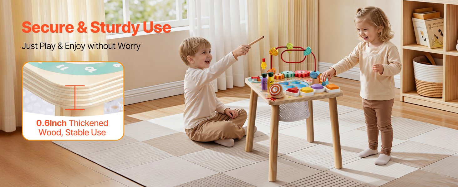 Tento stolík na učenie je vyrobený z dreva s hrúbkou 0,6 palca s povrchovou úpravou, ktorá je vhodná pre deti a má nízku vôňu. Robustná konštrukcia odoláva každodenným nárazom a kolísaniu, takže deti si môžu hrať bez obáv a opatrovatelia si môžu užívať väčší pokoj.