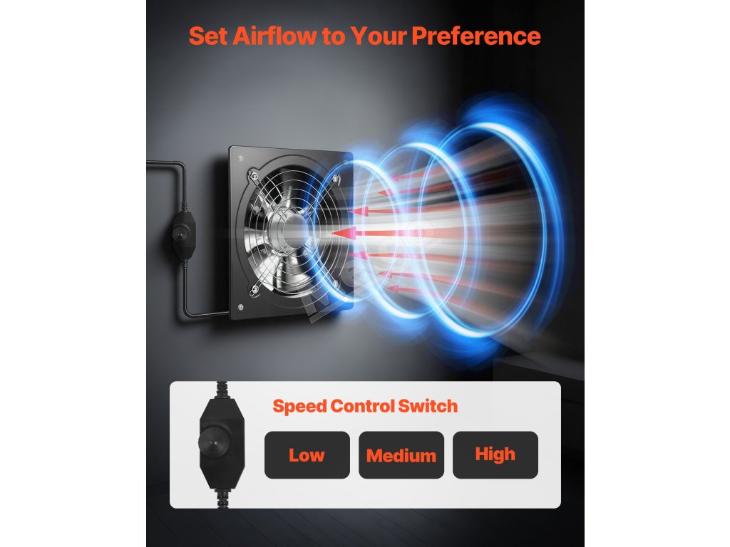 Tento nástenný odsávač má vstavaný prepínač rýchlosti, ktorý vám umožňuje prispôsobiť prietok vzduchu od nízkeho po vysoký pre efektívne vetranie, komfort a úsporu energie v akomkoľvek priestore. Spätný ventil pomáha obmedziť spätný prietok vzduchu a vniknutie vonkajšieho vzduchu.