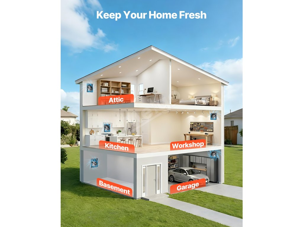 Tento kuchynský odsávač rýchlo pomáha znižovať vlhkosť, dym a cirkuláciu vzduchu v interiéri, čím vytvára sviežejší a pohodlnejší životný priestor. Vychutnajte si čistý a príjemný vzduch zakaždým, keď varíte alebo vetráte svoj priestor.