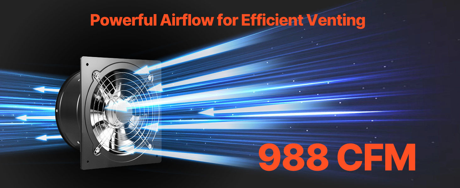 Odsávací ventilátor 25.4 cm, 988 cfm, regulácia otáčok, na stenu