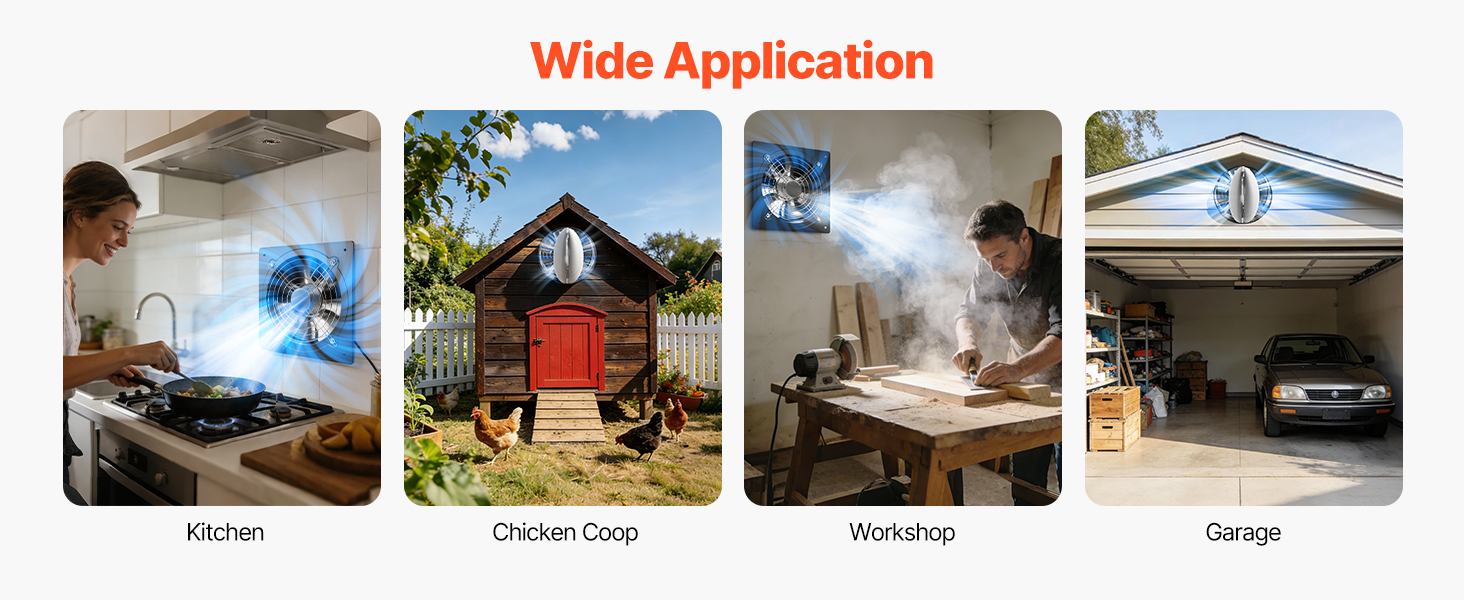 Náš kovový odsávač pár je ideálny do kuchýň, garáží, dielní, práčovní, podkroví a ďalších priestorov, kde poskytuje spoľahlivé vetranie všade tam, kde potrebujete čerstvý a príjemný vzduch.