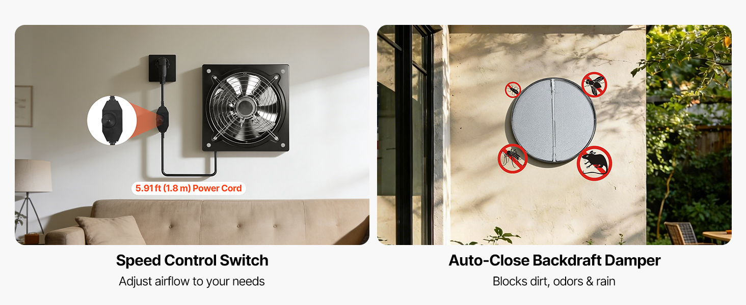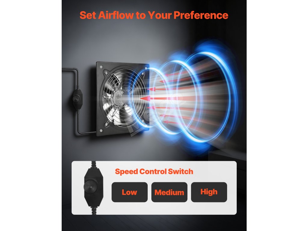 Tento nástenný odsávač pár je vybavený vstavaným prepínačom rýchlosti, ktorý vám umožňuje prispôsobiť prietok vzduchu od nízkeho po vysoký pre efektívne vetranie, komfort a úsporu energie v akomkoľvek priestore. Spätný ventil pomáha obmedziť spätný prietok vzduchu a vniknutie vonkajšieho vzduchu.