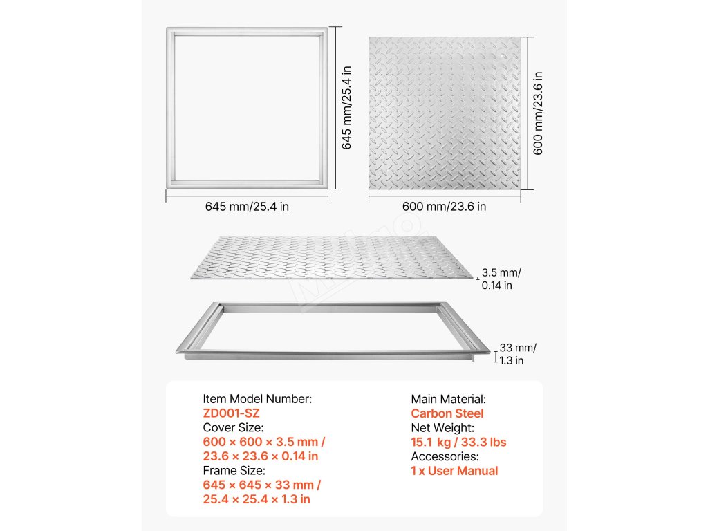 | Cover Size | 600 x 600 x 3.5 mm / 23.6 x 23.6 x 0.14 in |