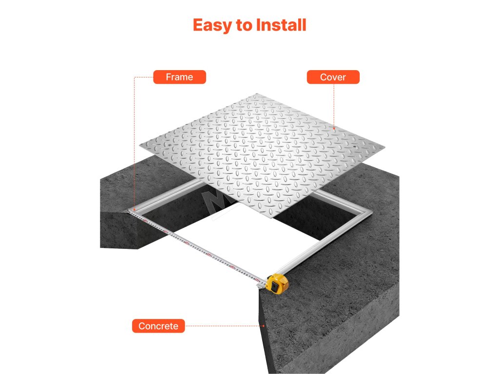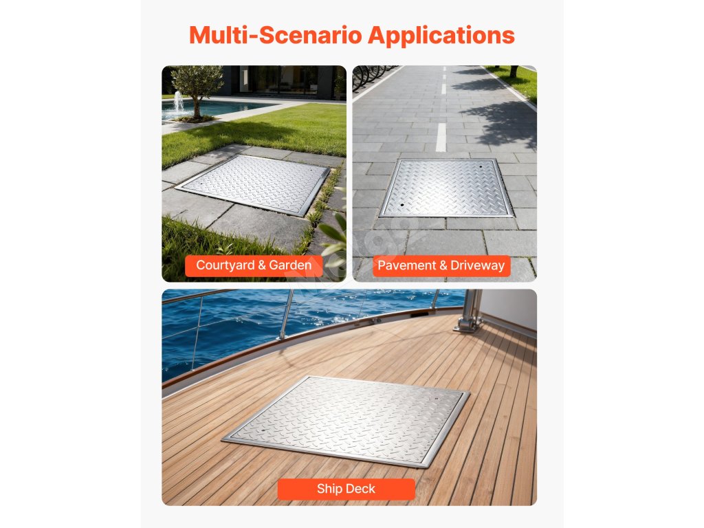 Tento štvorcový poklop na šachtu je navrhnutý tak, aby pasoval na väčšinu štandardných prístupových otvorov. Pokrýva celý okraj bez medzier a previsov, čo zaručuje jednoduchú inštaláciu a čistý, profesionálny vzhľad.