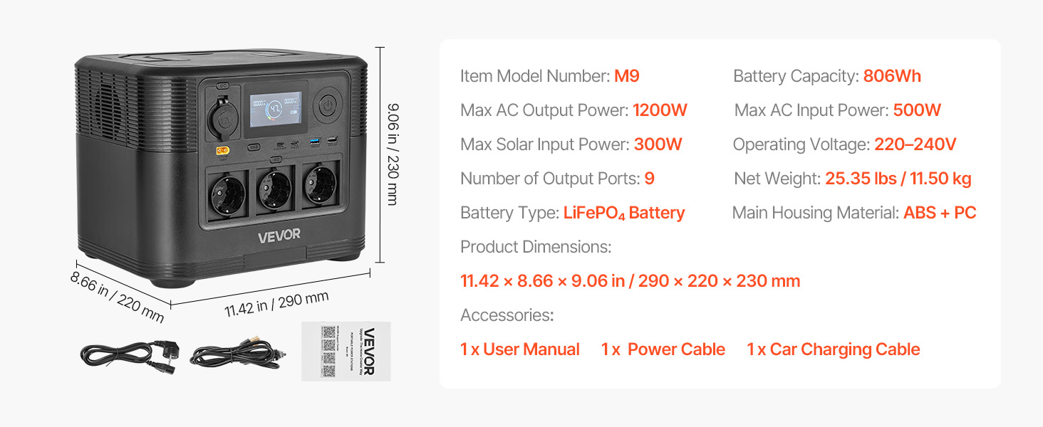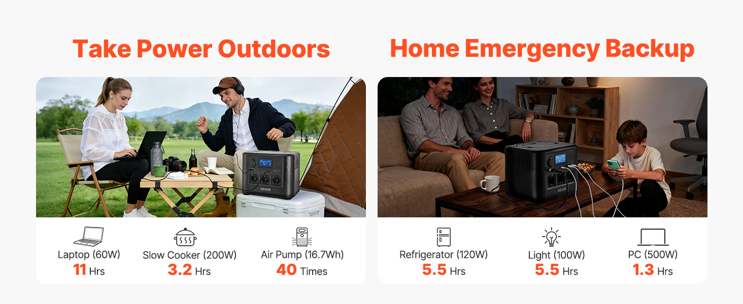 S vysokou kapacitou 806 Wh a výkonom 1200 W táto prenosná elektráreň poskytuje dostatočný a spoľahlivý zdroj energie pre domáce núdzové situácie a kempovanie v prírode – vďaka čomu budete pripravení a budete mať energiu kdekoľvek ste.