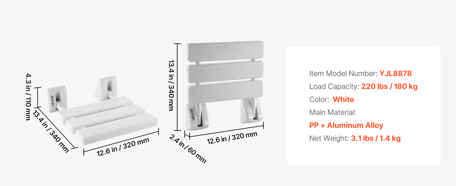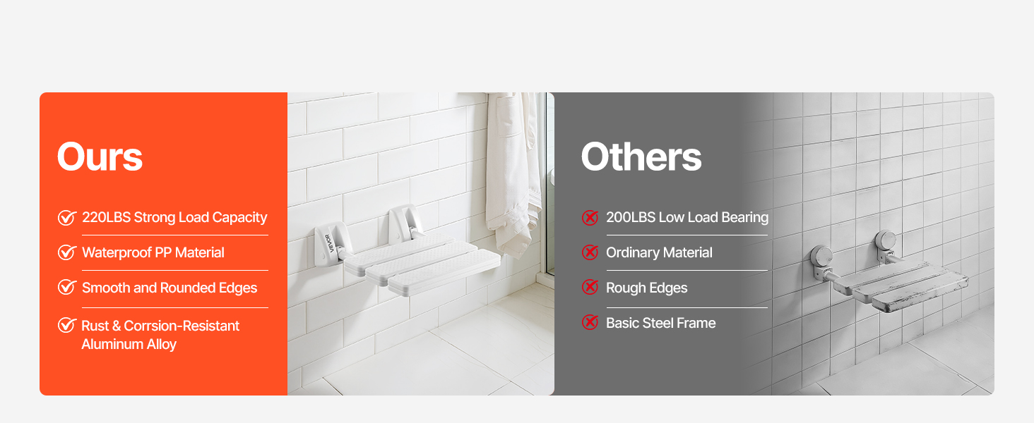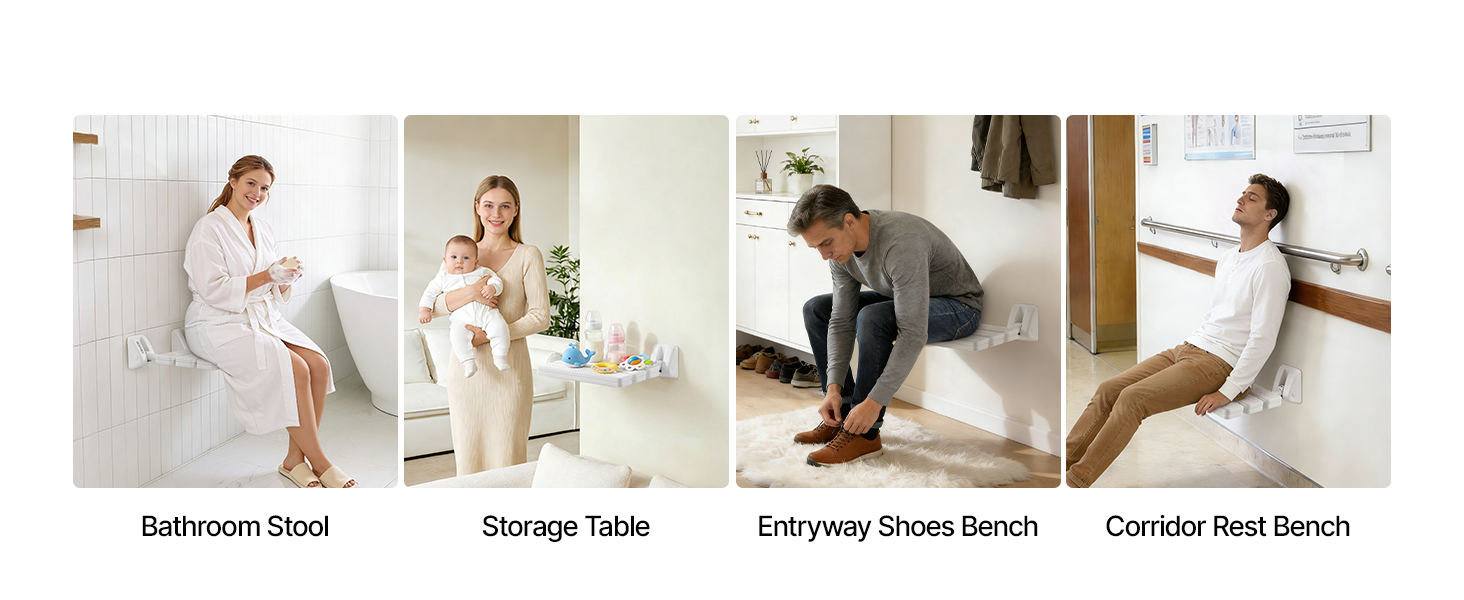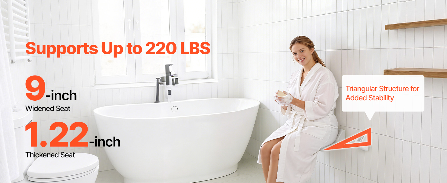 Nástenná sprchová stolička VEVOR kombinuje skladacie pohodlie, spoľahlivú oporu a pohodlné sedenie, aby vyhovovala každodenným sprchovým a viacúčelovým potrebám, čím robí váš zážitok zo sprchovania pohodlnejším a príjemnejším.
