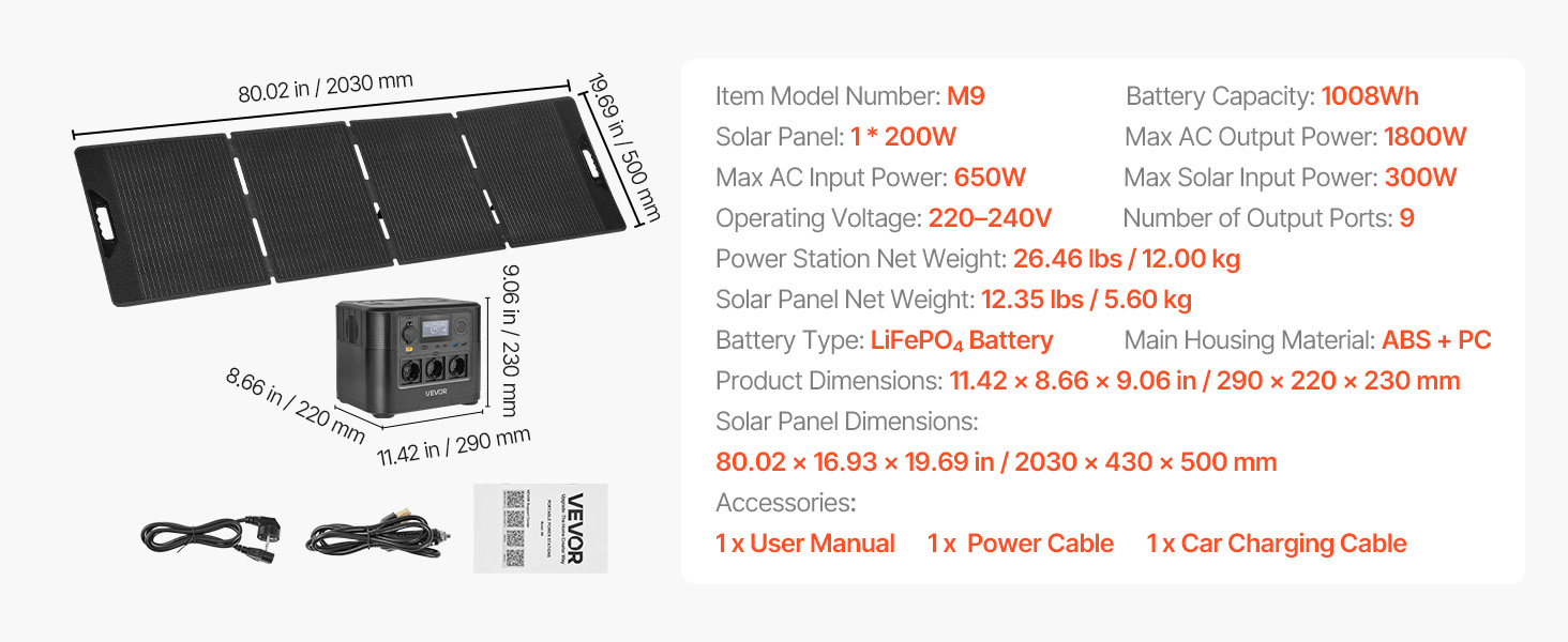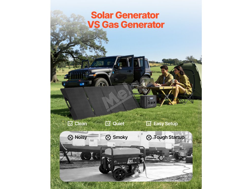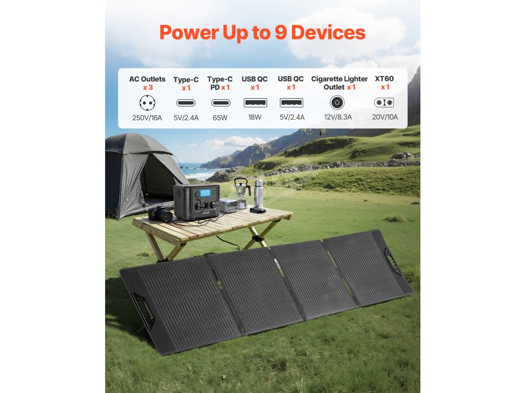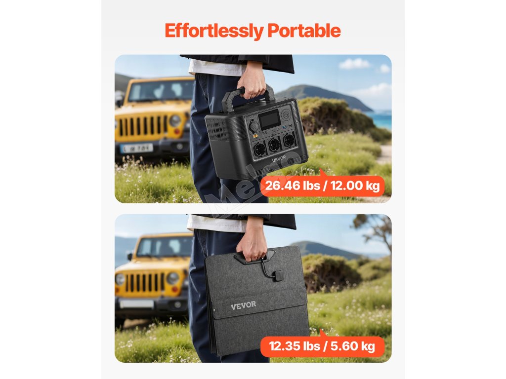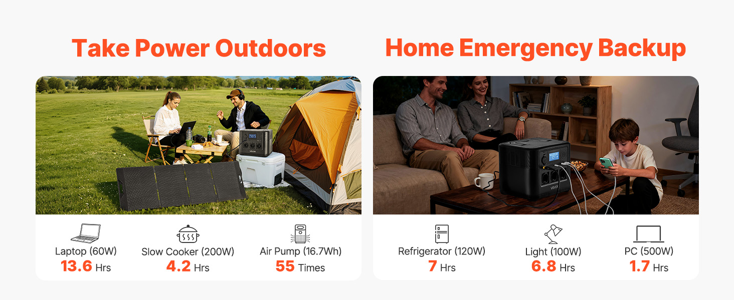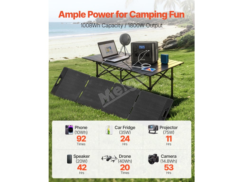 S vysokou kapacitou 1008 Wh a výkonom 1800 W táto prenosná elektráreň v kombinácii so solárnym panelom s výkonom 200 W poskytuje dostatočný a udržateľný výkon pre domáce núdzové situácie a kempovanie v prírode – vďaka čomu budete pripravení a budete mať energiu, kdekoľvek sa nachádzate.