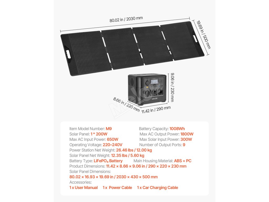 Solárny generátor 1008Wh LiFePO4, 1800W, 200W panel, 9 výstupov