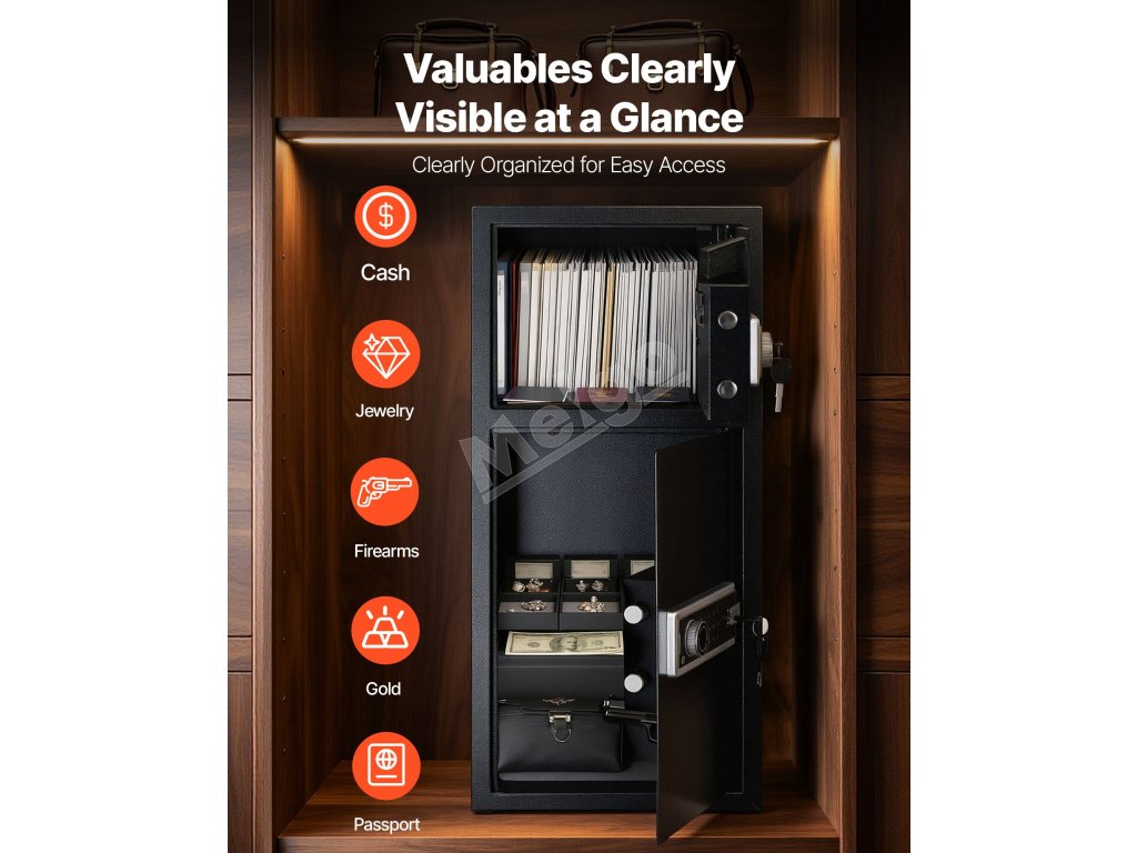 Tento trezor, vyrobený s použitím pokročilej šifrovacej technológie, vytvára pevnú obrannú líniu pre vaše cennosti. Nech už je umiestnený vo vašej domácnosti, kancelárii alebo hotelovej izbe, zaručuje maximálnu ochranu a spoľahlivý pokoj.