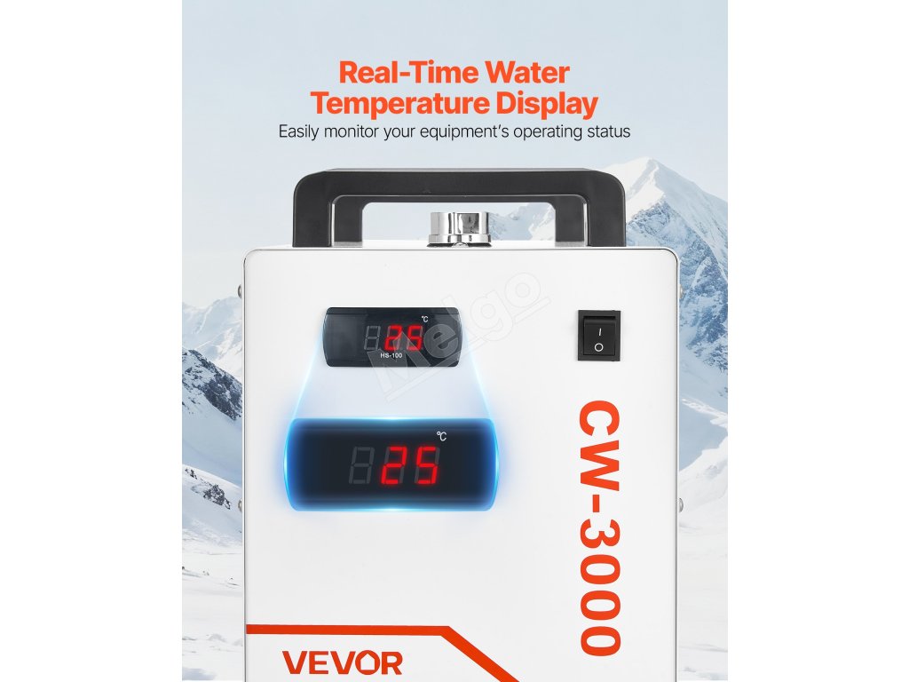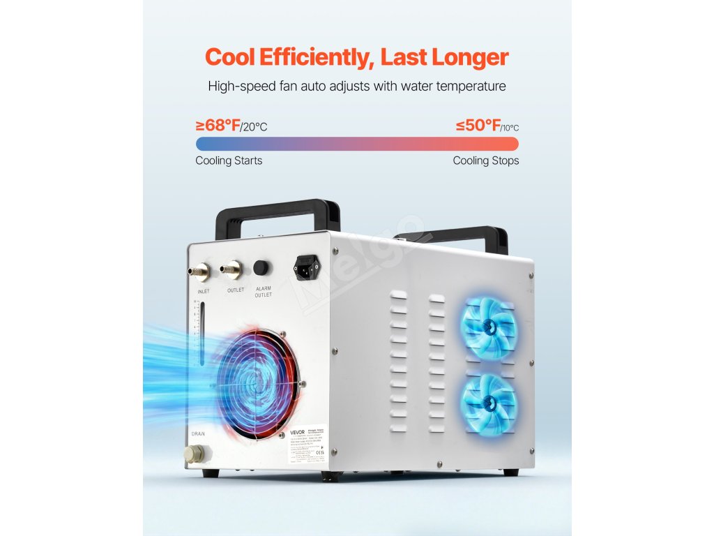 Náš priemyselný vodný chladič je vybavený presným teplomerom, ktorý jasne zobrazuje aktuálnu teplotu vody na obrazovke. Presne sledujte prevádzkový stav vášho chladiča kedykoľvek.