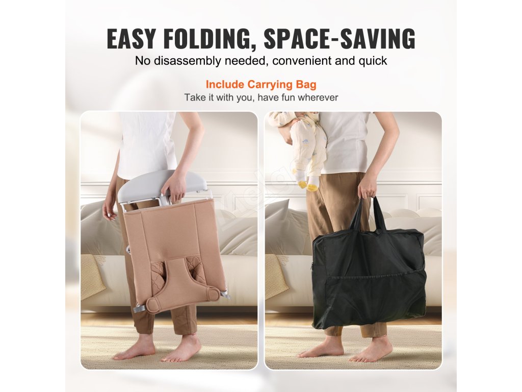 Toto prenosné odrážadlo pre bábätká je ľahké a skladné, takže je ideálne na domáce použitie aj na cesty. Či už ste doma, na cestách alebo na návšteve u priateľov, možno ho bez námahy uložiť do kufra auta, čím zabezpečíte, že vaše dieťatko bude mať vždy útulné miesto na odpočinok.