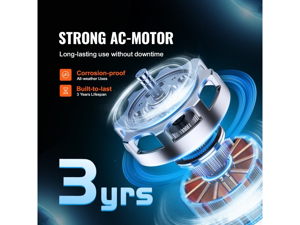 Je vybavený vysokootáčkovým motorom a môže sa pochváliť dlhou životnosťou 3 roky. Na jeho výkon a kvalitu sa môžete spoľahnúť bez obáv z problémov s výkonom alebo poškodenia.