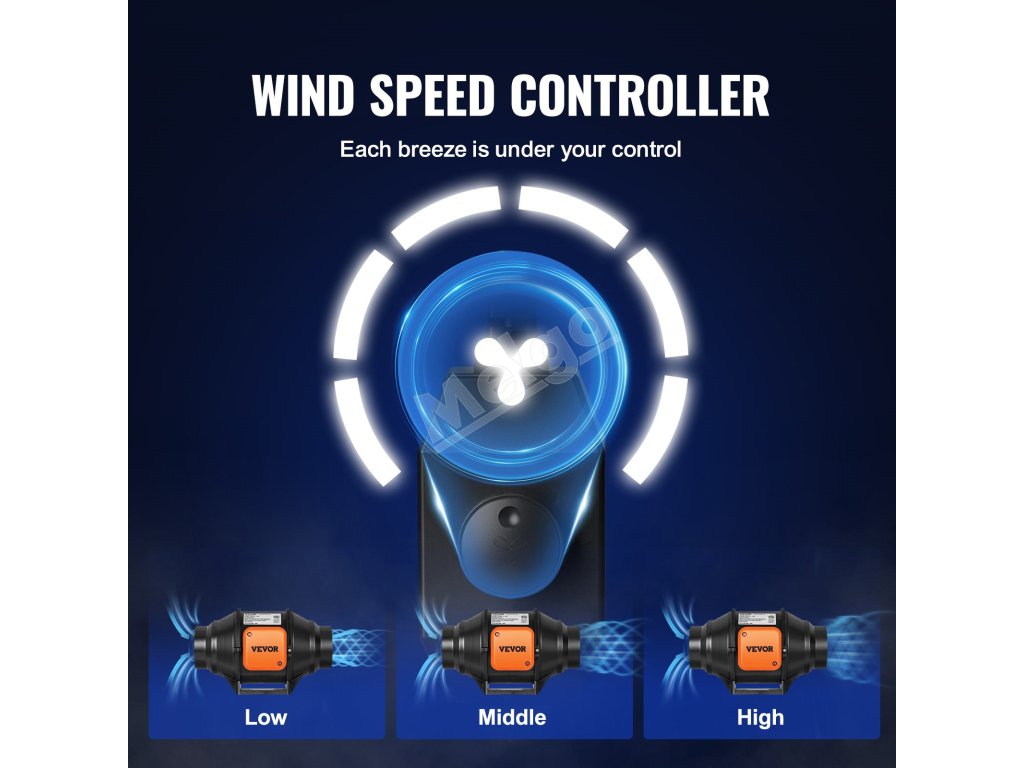 Inline ventilátor 102 mm 129.7 CFM, variabilné otáčky, tichý ac motor