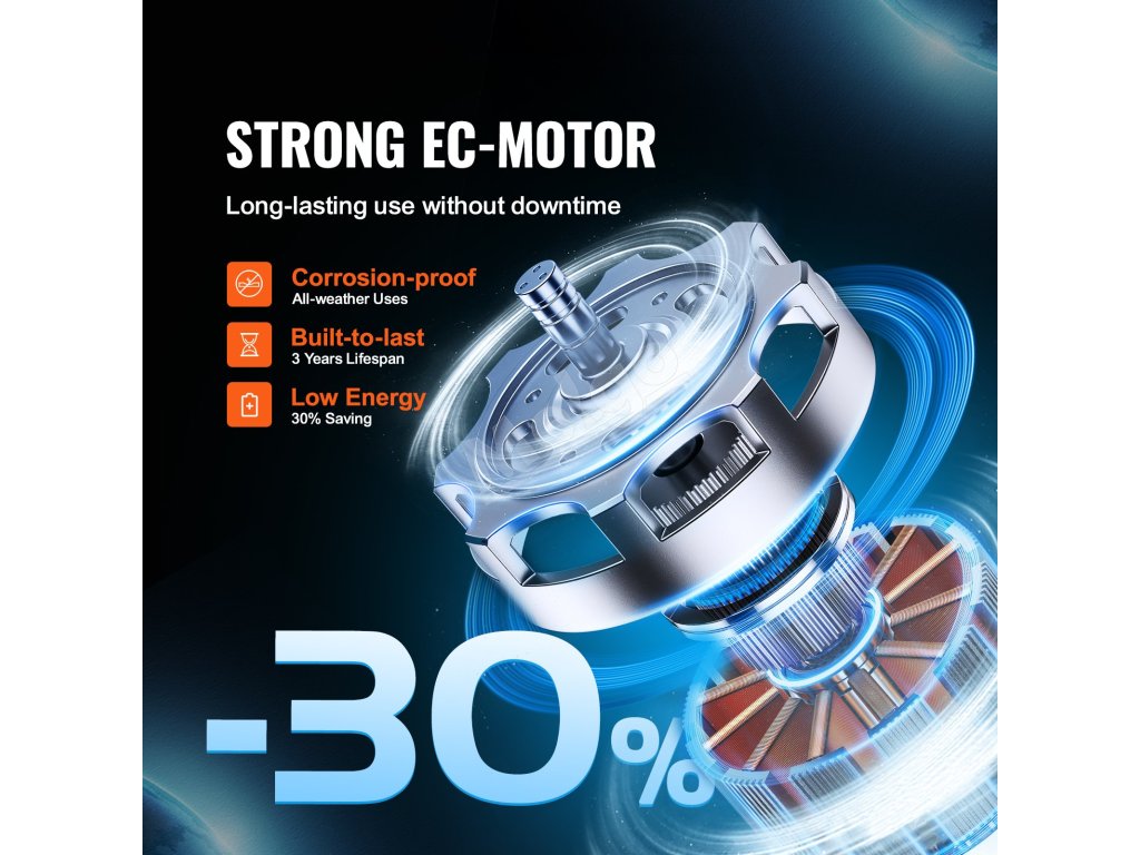 Odpoveď: ÁNO. Náš ventilátor môže dosiahnuť 30 000 hodín nepretržitej prevádzky. Energeticky účinný EC-motor zabezpečuje mimoriadne stabilnú prevádzku.