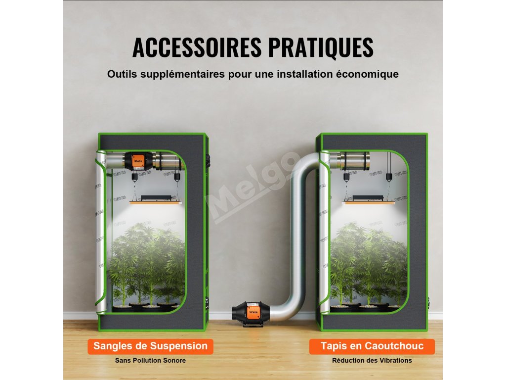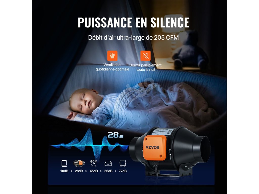 Vďaka gumovým rohožiam bez vibrácií a vynikajúcemu motoru môže byť hlučnosť inline ventilátora až 28 dB, čo zabraňuje hlučnosti.
