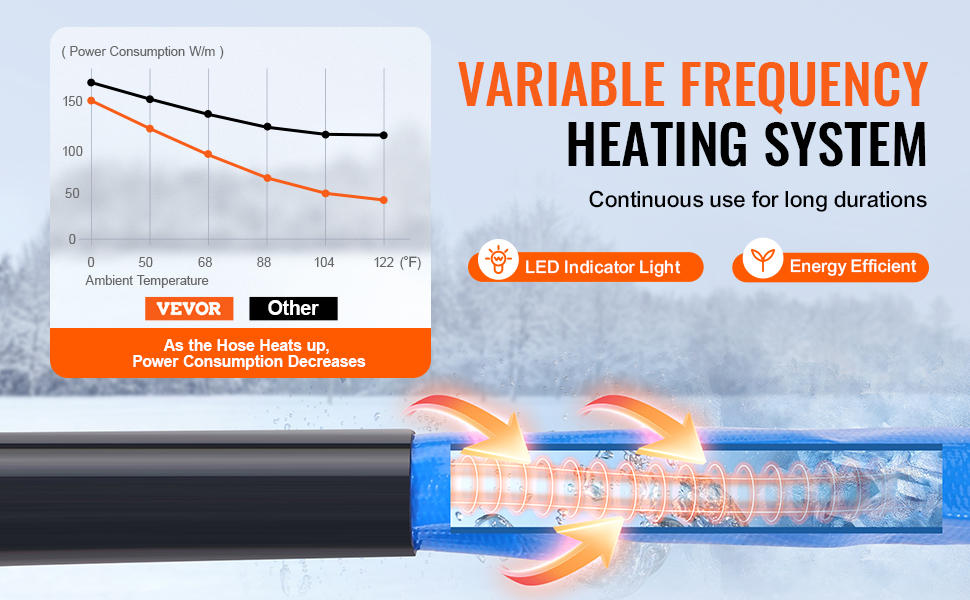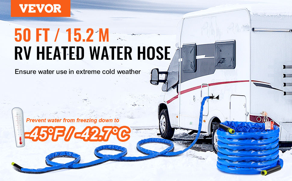 Počas zimných nocí vo väčšine regiónov obyčajné hadice kvôli nízkym teplotám zamrznú. S vyhrievanou hadicou na vodu pre obytné automobily VEVOR si môžete užívať normálne používanie vody aj pri teplote -45 °C počas kempovania v obytnom automobile.