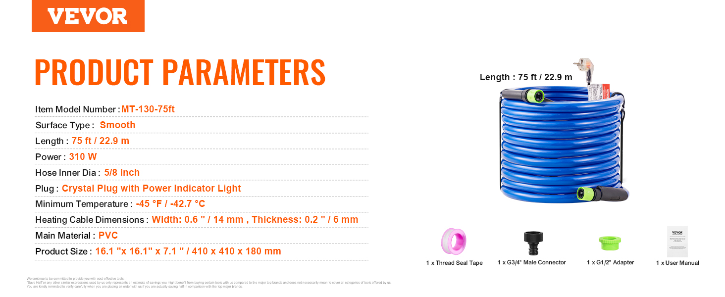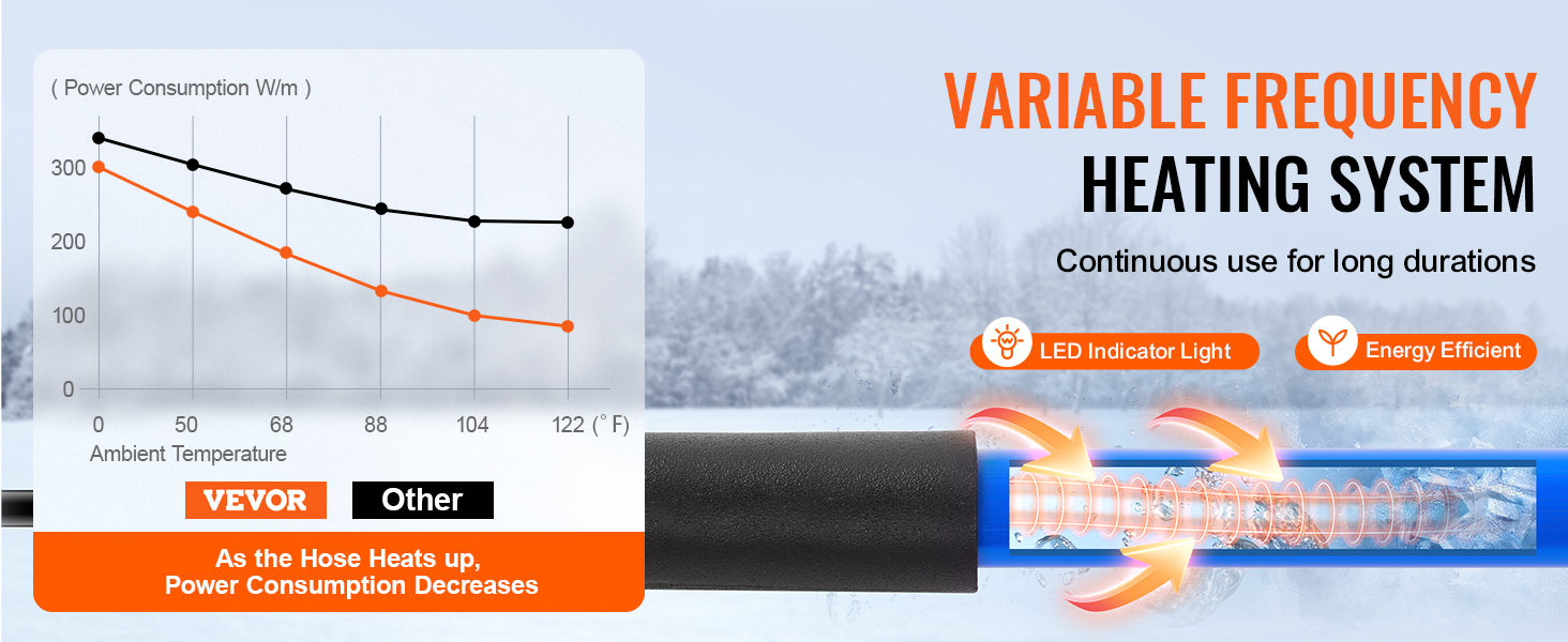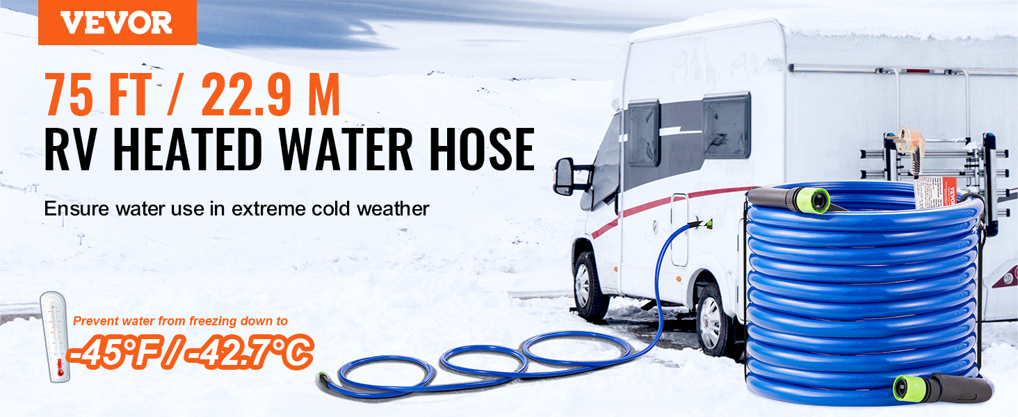Počas zimných nocí vo väčšine regiónov obyčajné hadice kvôli nízkym teplotám zamrznú. S vyhrievanou hadicou na vodu pre obytné automobily VEVOR si môžete užívať normálne používanie vody aj pri teplote -45 °C počas kempovania v obytnom automobile.