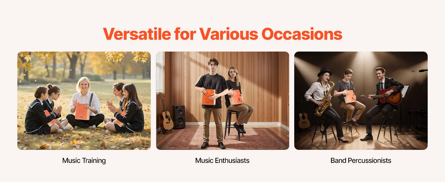 Náš bubon cajon je skonštruovaný tak, aby sa prispôsobil vašim rukám, a preto poskytuje bezproblémové ovládanie a prirodzený pocit pri každom údere
