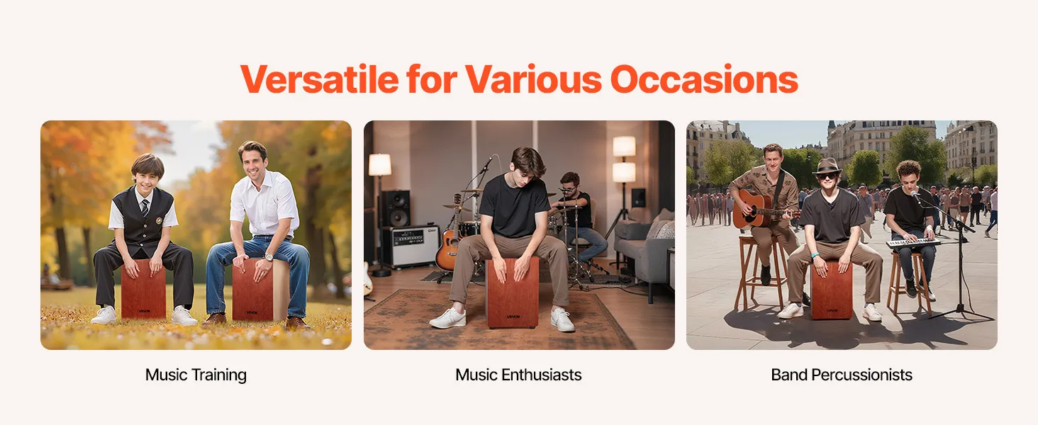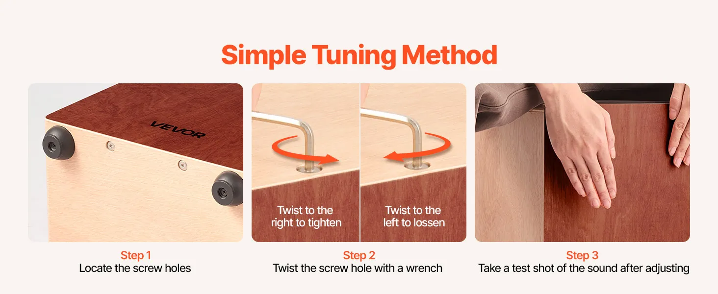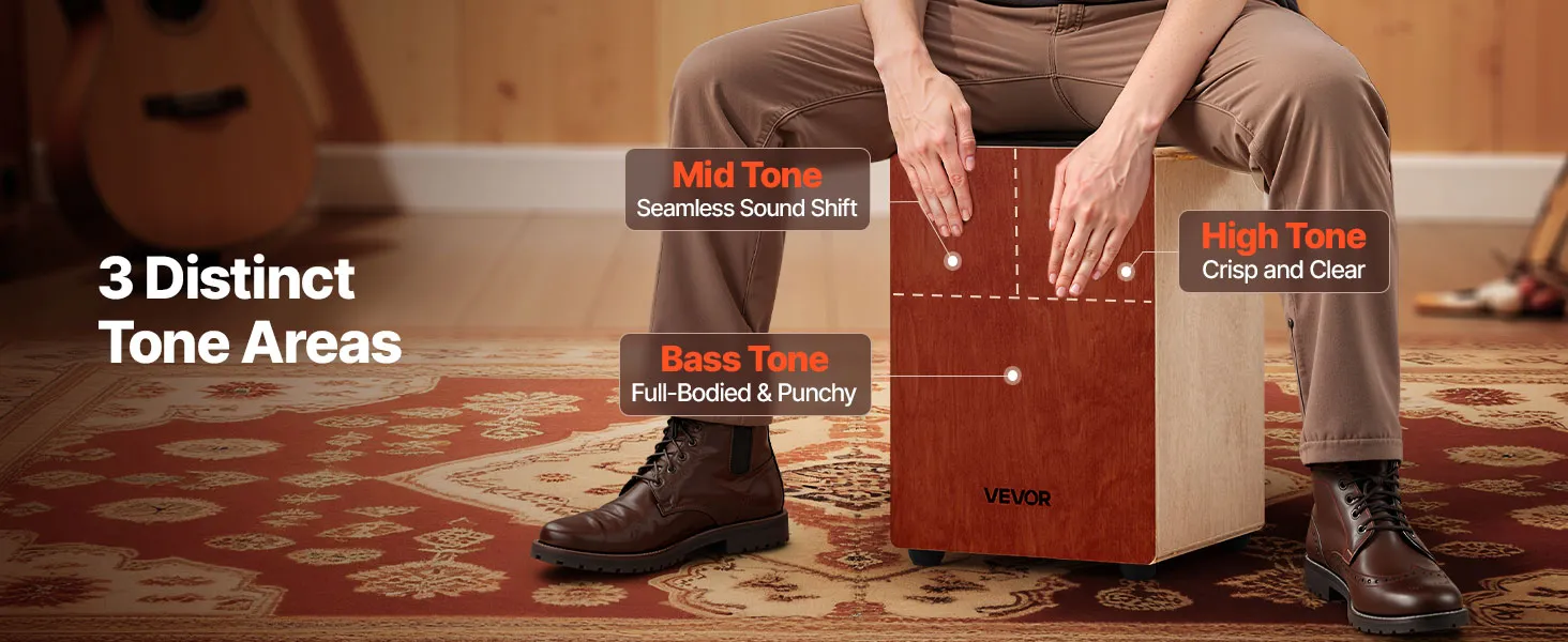 Náš bubon cajon je skonštruovaný tak, aby sa prispôsobil vašim rukám, a preto poskytuje bezproblémové ovládanie a prirodzený pocit pri každom údere