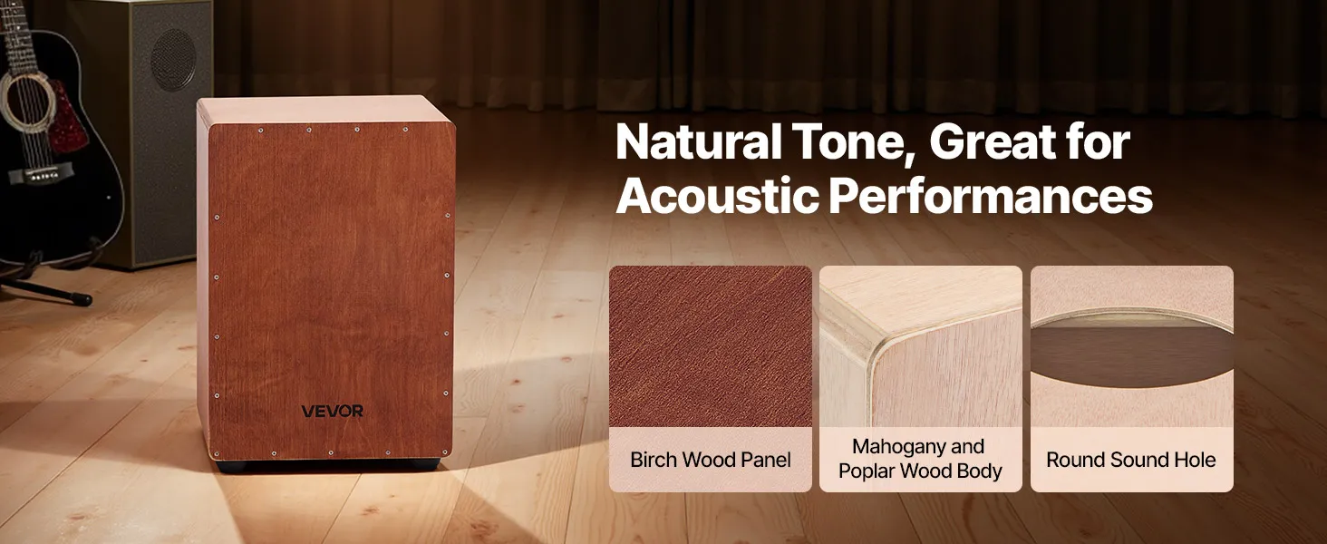 Náš bubon cajon je skonštruovaný tak, aby sa prispôsobil vašim rukám, a preto poskytuje bezproblémové ovládanie a prirodzený pocit pri každom údere