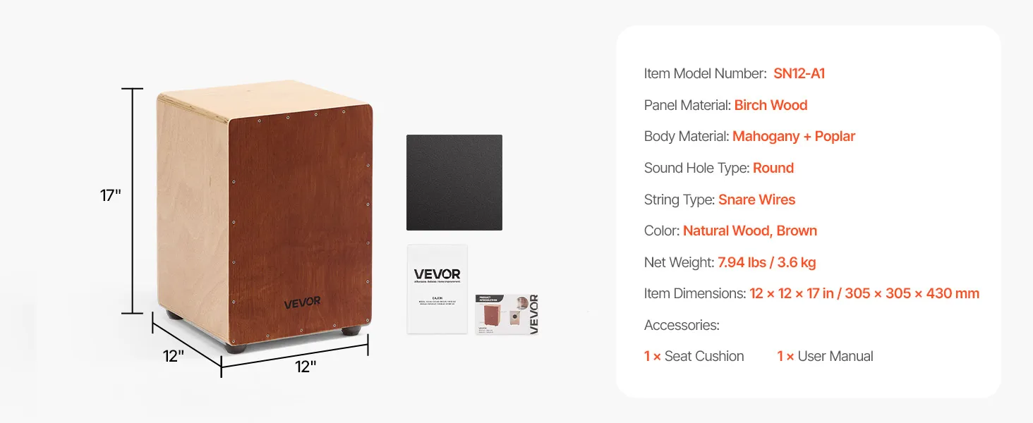 Tento bubon cajon box je starostlivo vyrobený s hranami bez otrepov a lešteným povrchom, ktorý chráni vaše ruky počas dlhých sedení
