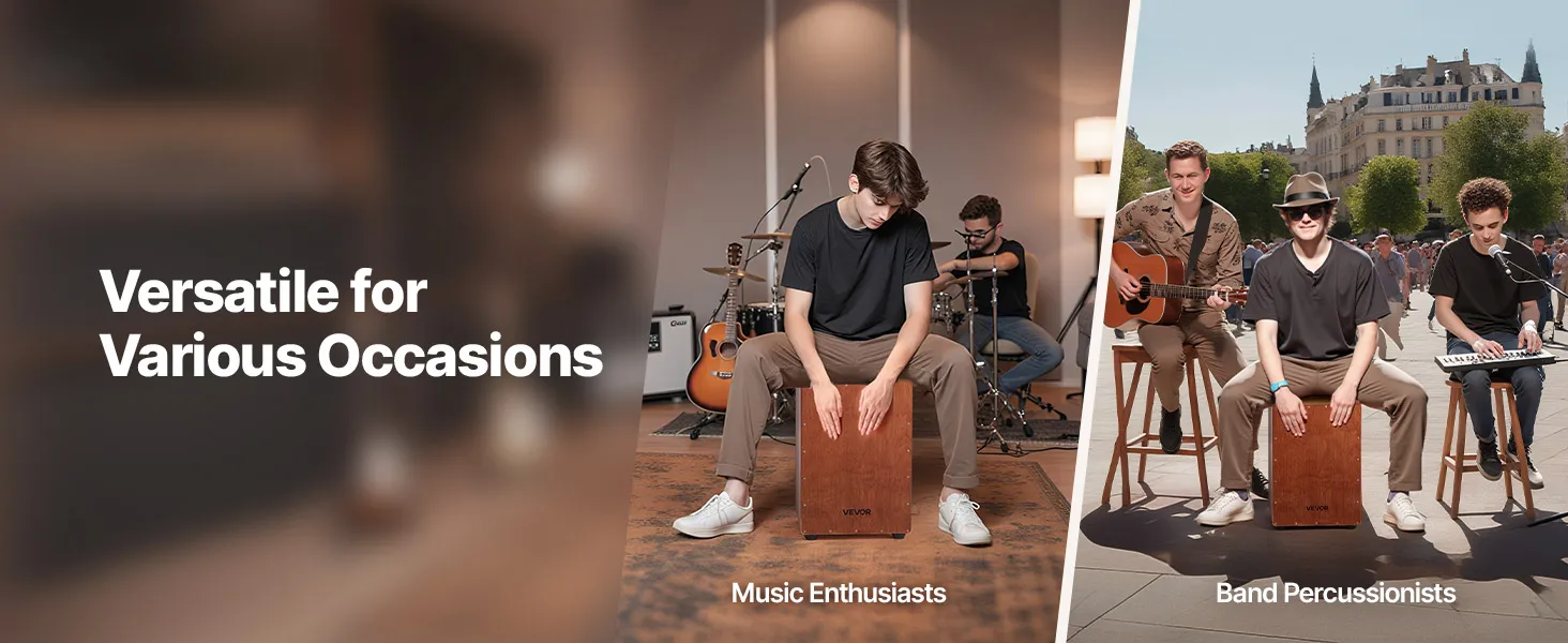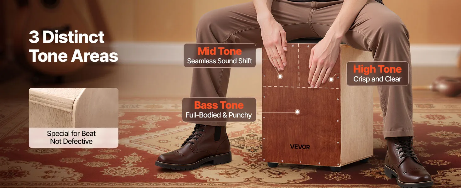 Náš bubon cajon je skonštruovaný tak, aby sa prispôsobil vašim rukám, a preto poskytuje bezproblémové ovládanie a prirodzený pocit pri každom údere